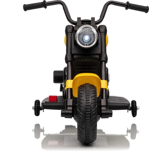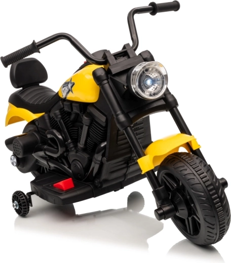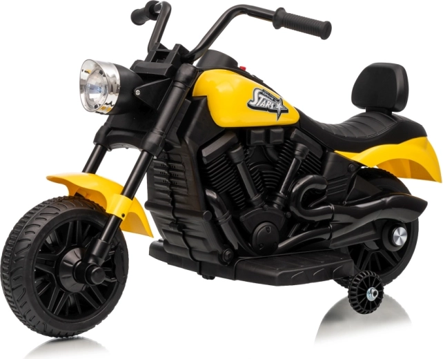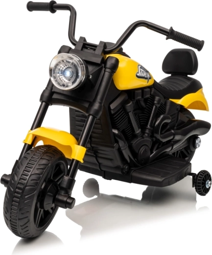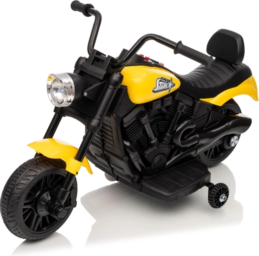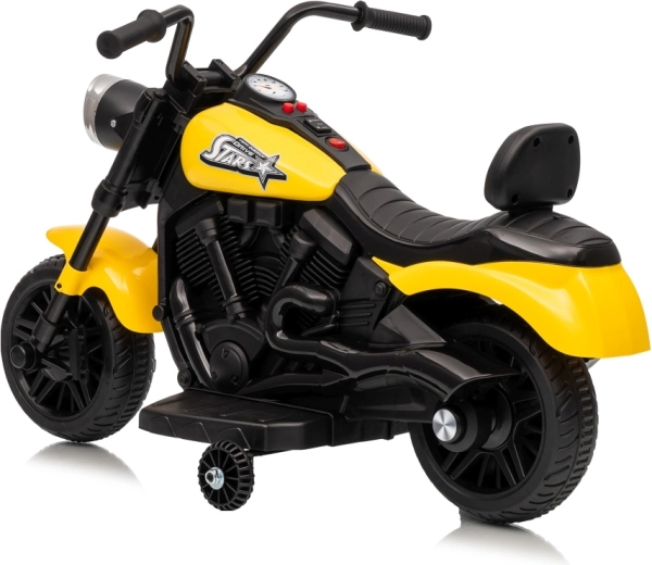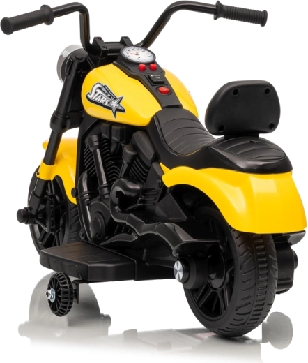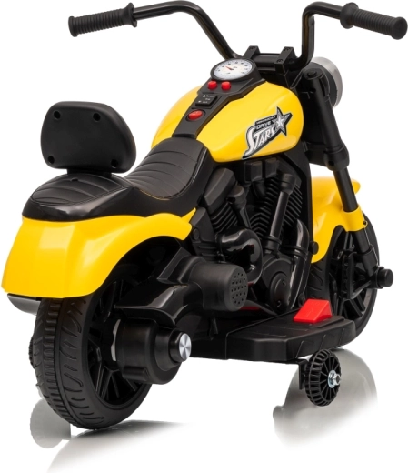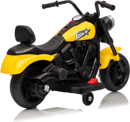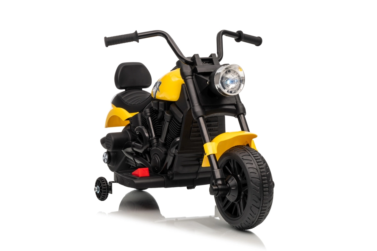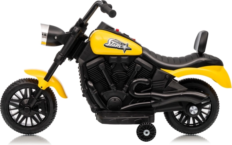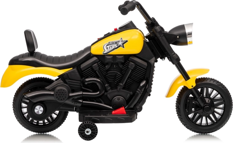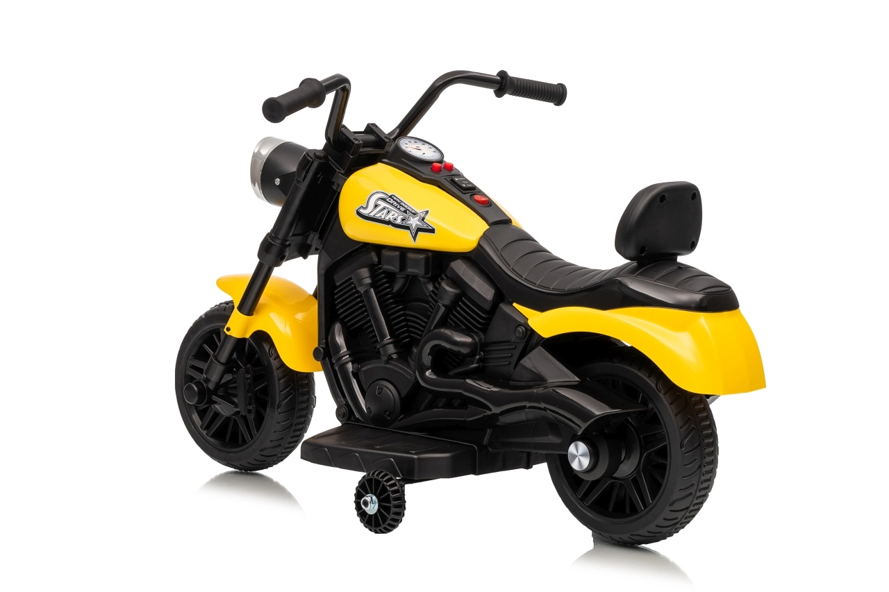 A stílusos STAR elektromos gyerek motor sárga színben biztonságos szórakozást nyújt a kicsi motorosoknak. A lágy indítás, a stabilizáló oldalsó kerekek és az első LED lámpa kényelmessé és biztonságossá teszik a vezetést. A motor előre- és hátramenetet, egyszerű gombos indítást és hangpanelt dallamokkal kínál a még nagyobb vezetési élményért.