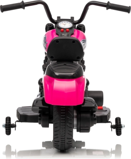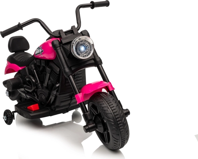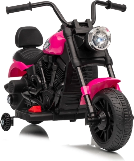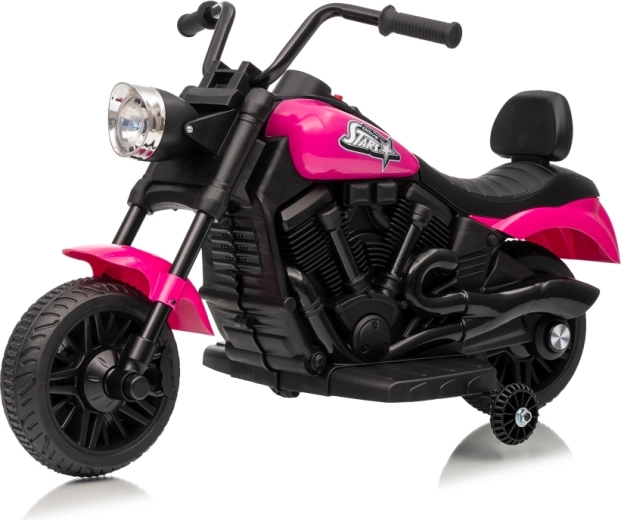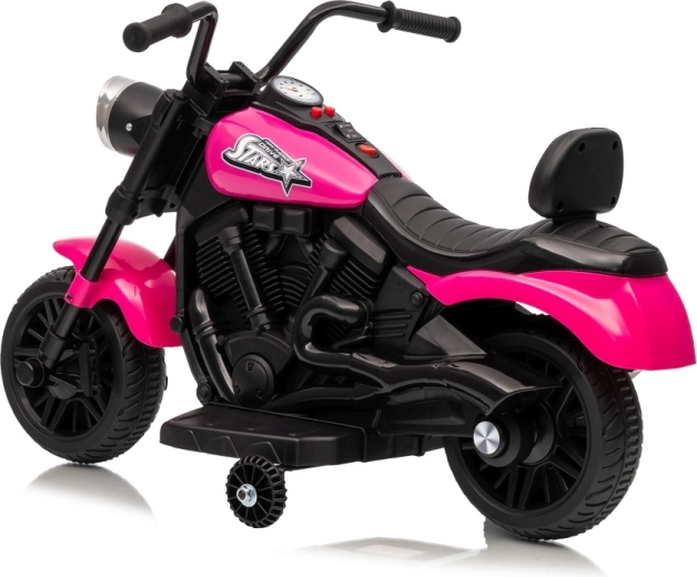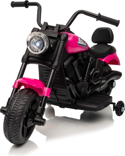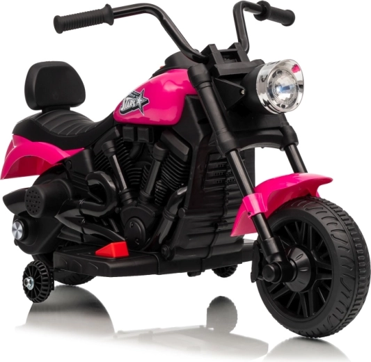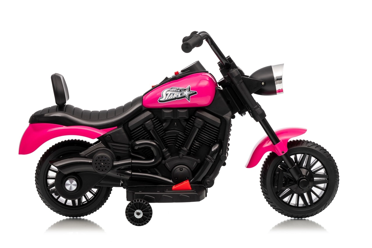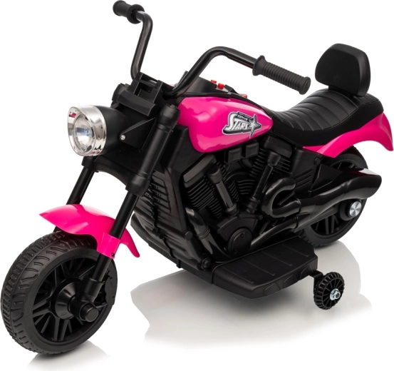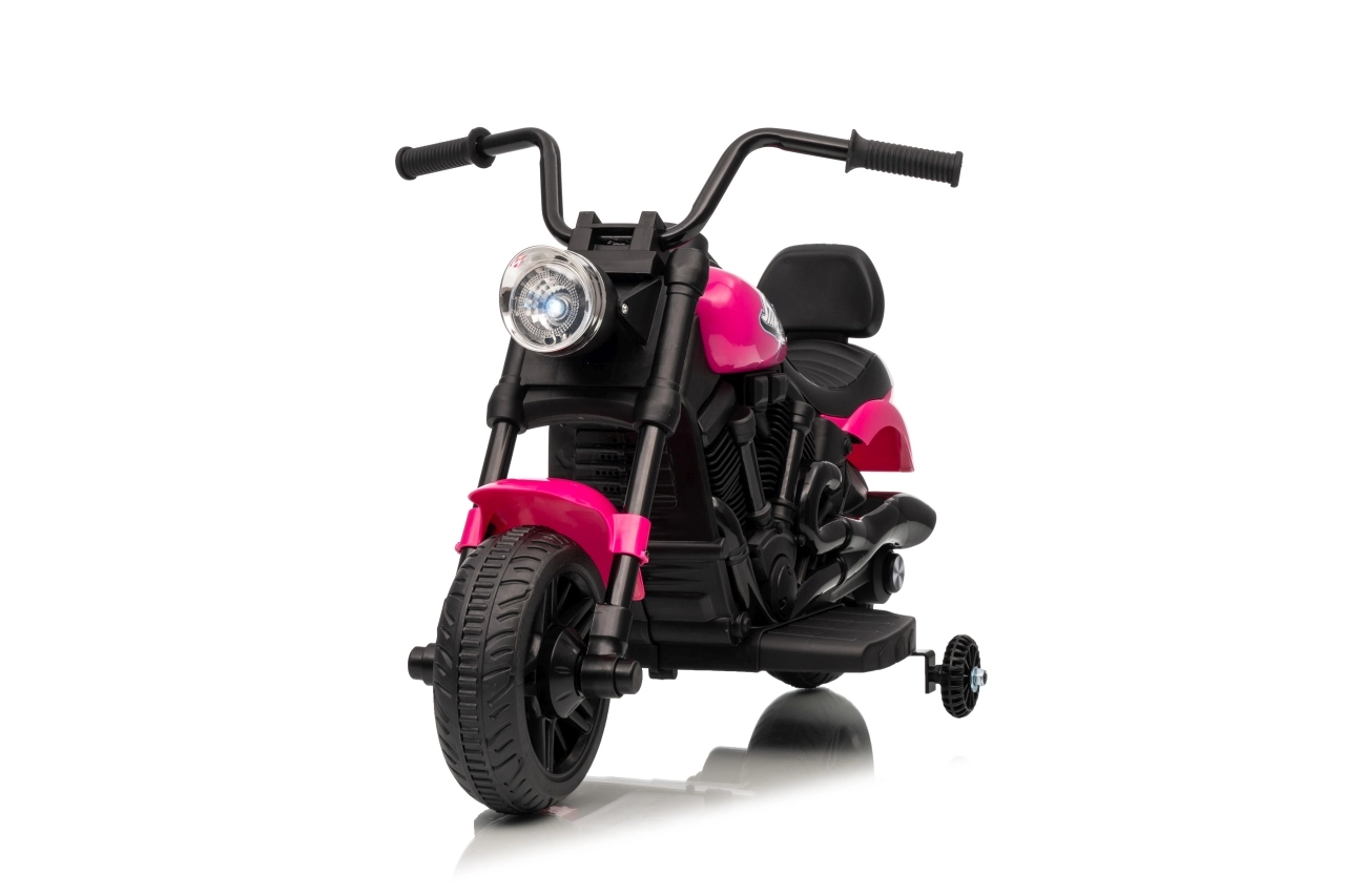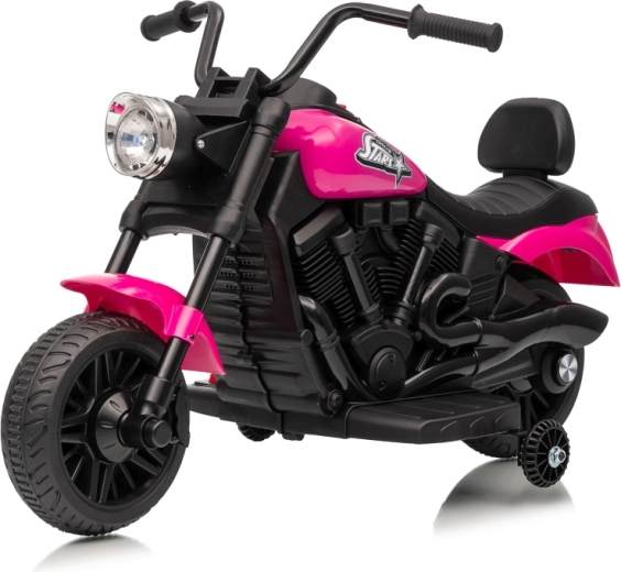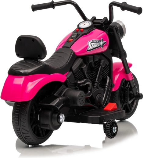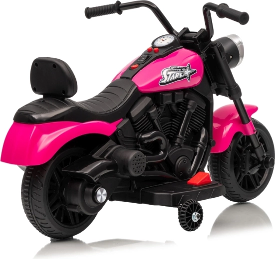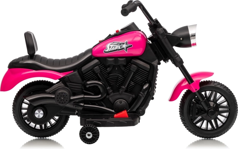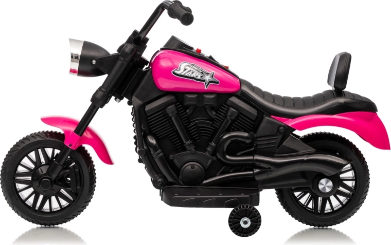 Ajándékozza meg a gyerekeket első motoros élményükkel a STAR elektromos motorral, vonzó rózsaszín–fekete színkombinációban. A stabilitást az oldalsó segédkerekek, a széles műanyag abroncsok és a kényelmes, háttámlás ülés biztosítják. Az első LED fény valósághű megjelenést ad és növeli a láthatóságot.