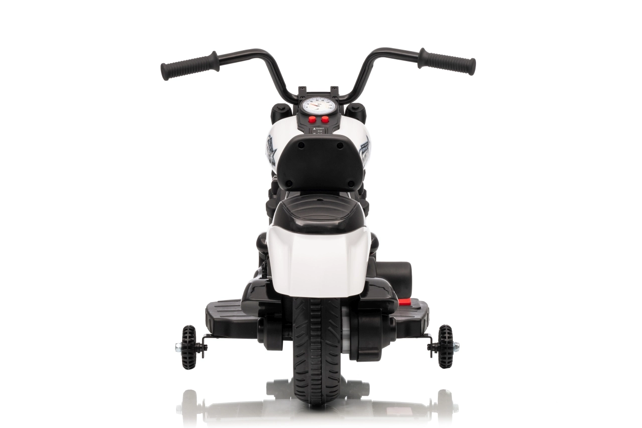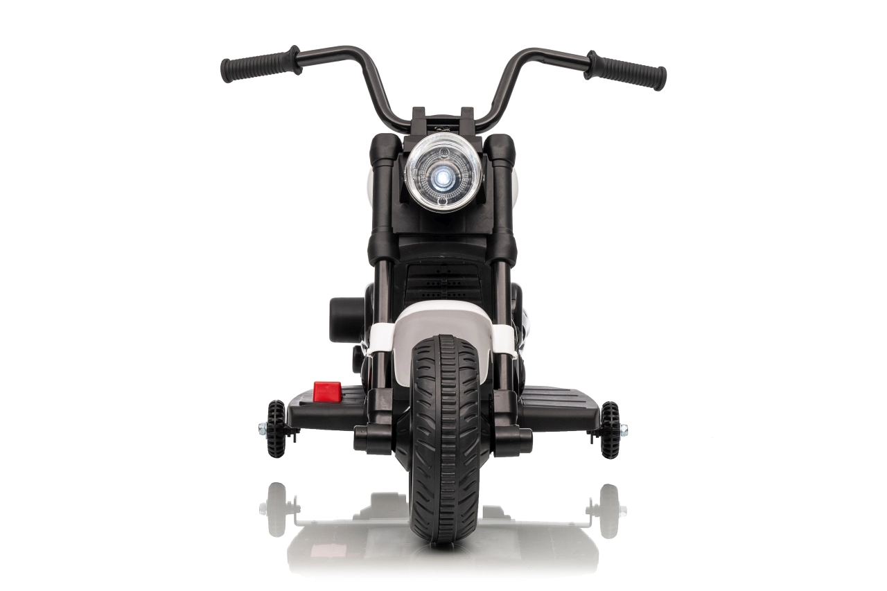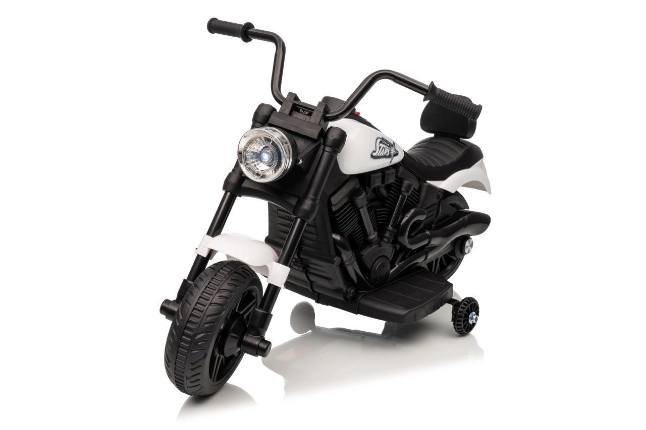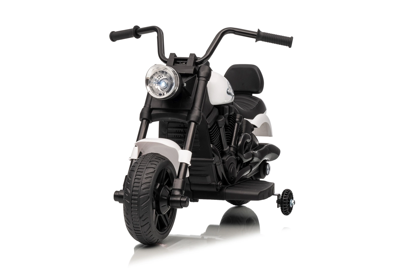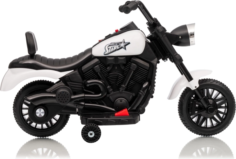 Stílusos gyermek elektromos motor fehér színben, amely biztonságos szórakozást nyújt a kis motorosoknak. A 30 W-os motor, a 6 V 4,5 Ah akkumulátor, a stabilizáló oldalkerekek és az első LED lámpa révén a gyerekek a lakásban és a szabadban is élvezhetik a vezetést. A kényelmes ülés és a finom indulás magabiztosságot és kényelmet ad az első utakhoz.
