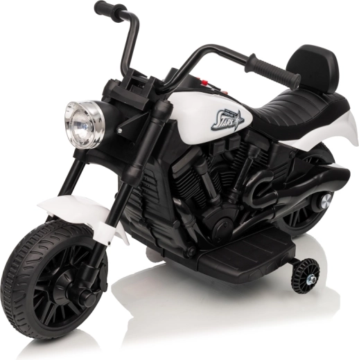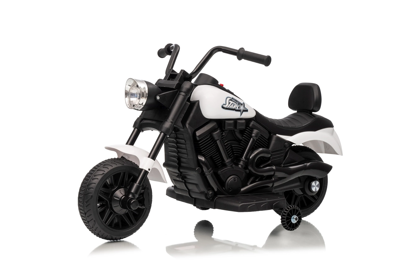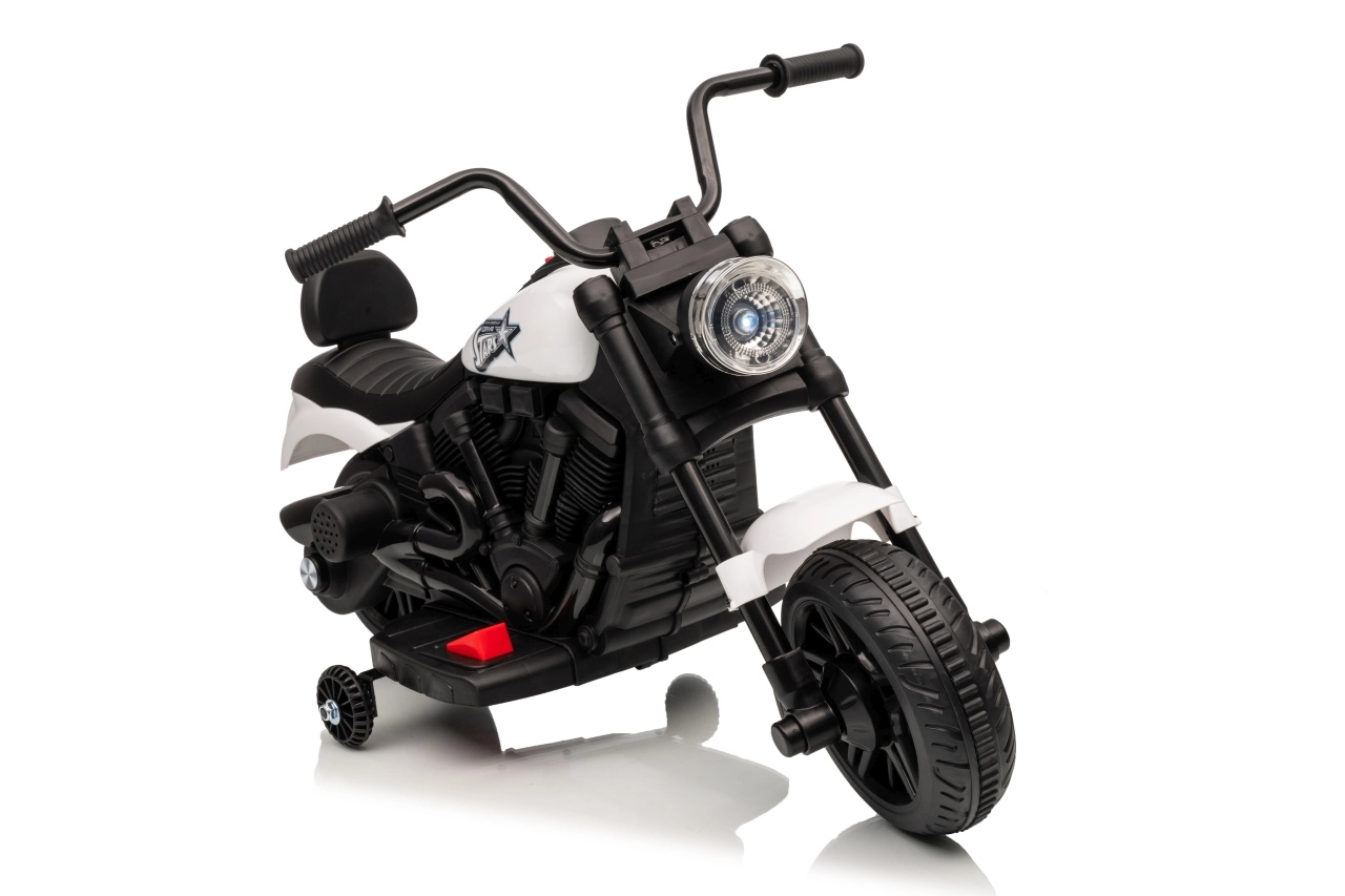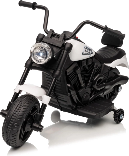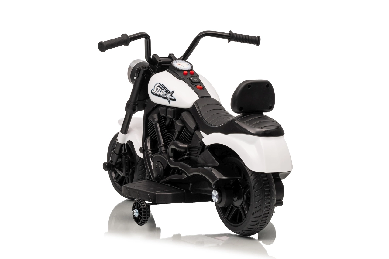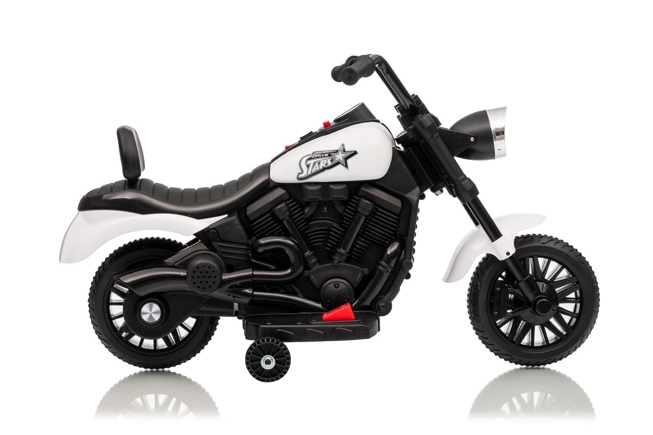 Stílusos gyermek elektromos motor fehér színben, amely biztonságos szórakozást nyújt a kis motorosoknak. A 30 W-os motor, a 6 V 4,5 Ah akkumulátor, a stabilizáló oldalkerekek és az első LED lámpa révén a gyerekek a lakásban és a szabadban is élvezhetik a vezetést. A kényelmes ülés és a finom indulás magabiztosságot és kényelmet ad az első utakhoz.
