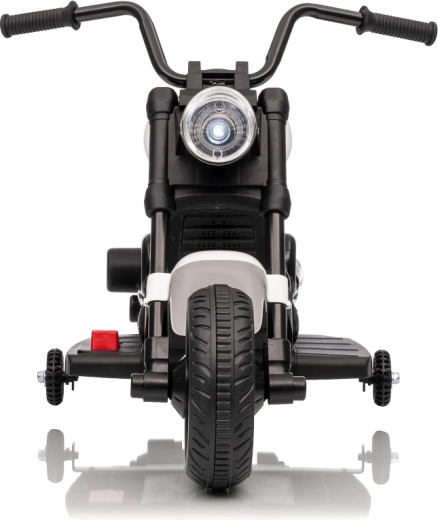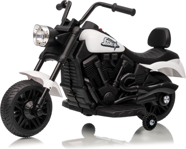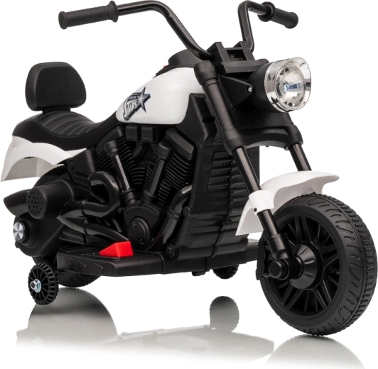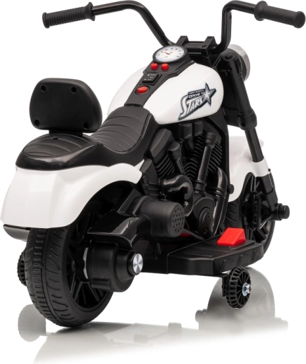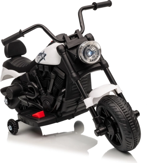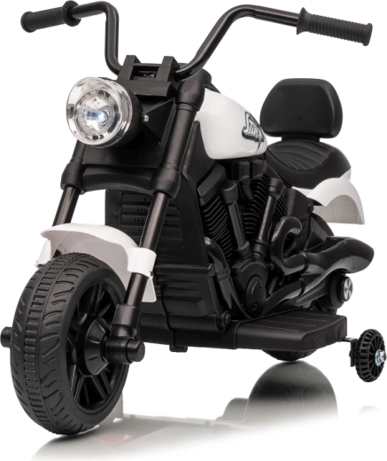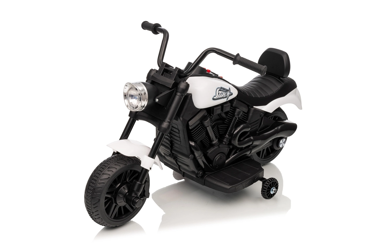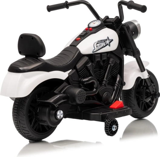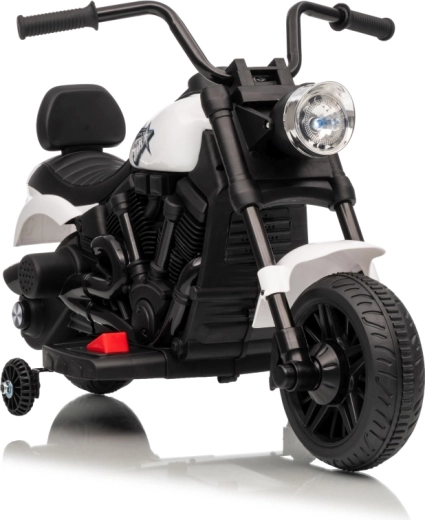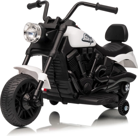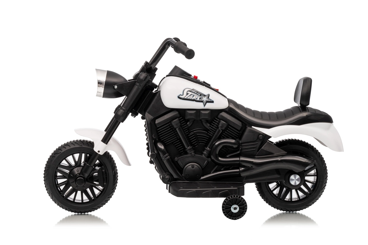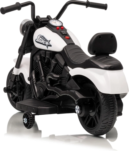 Stílusos gyermek elektromos motor fehér színben, amely biztonságos szórakozást nyújt a kis motorosoknak. A 30 W-os motor, a 6 V 4,5 Ah akkumulátor, a stabilizáló oldalkerekek és az első LED lámpa révén a gyerekek a lakásban és a szabadban is élvezhetik a vezetést. A kényelmes ülés és a finom indulás magabiztosságot és kényelmet ad az első utakhoz.