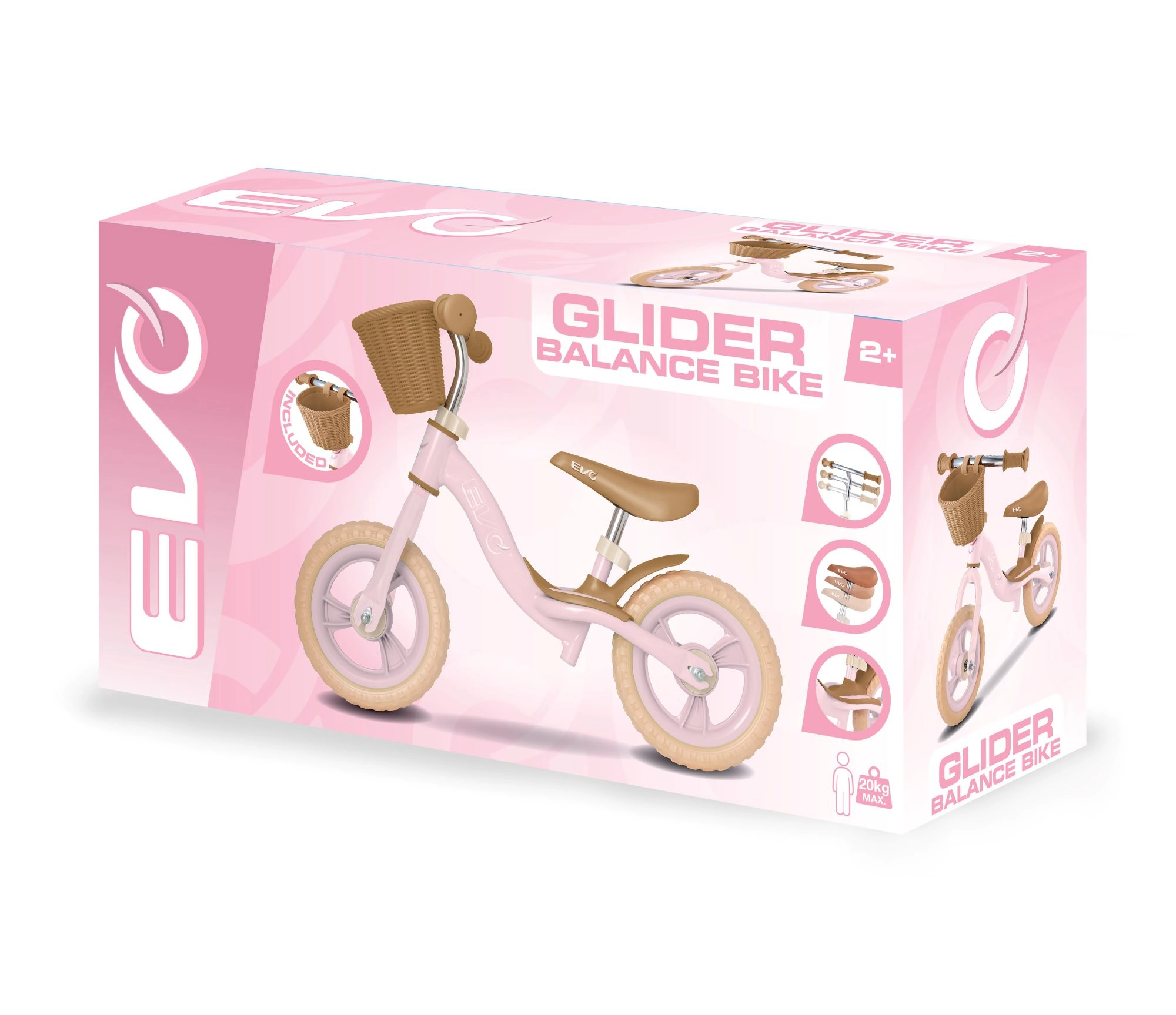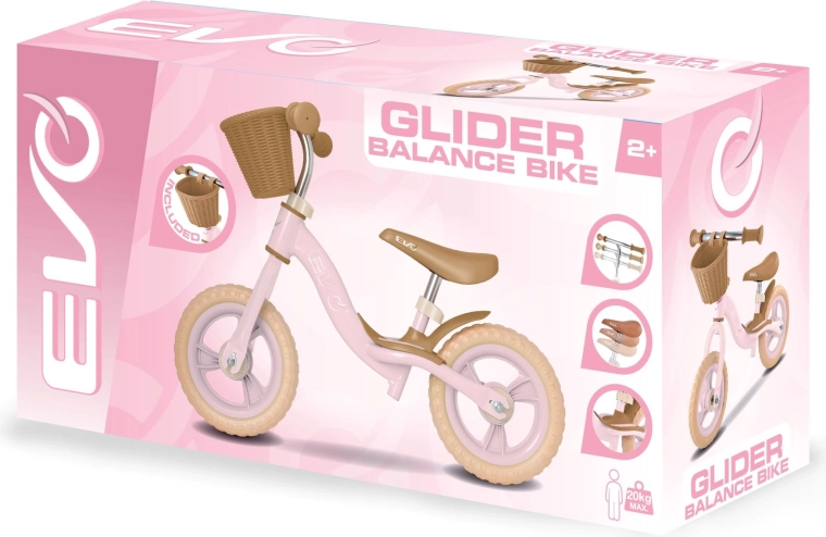 EVO gyerek futóbicikli Glider rózsaszín kosárral