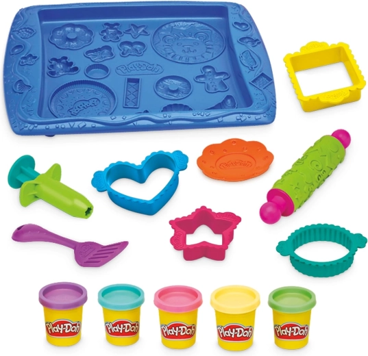 Ez a színes PLAY-DOH „Édes kekszek” készlet órákon át tartó, ötletes szórakozást nyújt. A formázó tálcával, texturázó nyújtóval, formákkal és kinyomóval a kis pékek lenyűgöző, kekszekre emlékeztető formákat, minitortákat és díszítéseket készíthetnek. A biztonságos és könnyen használható eszközök támogatják az önálló és a közös játékot is.