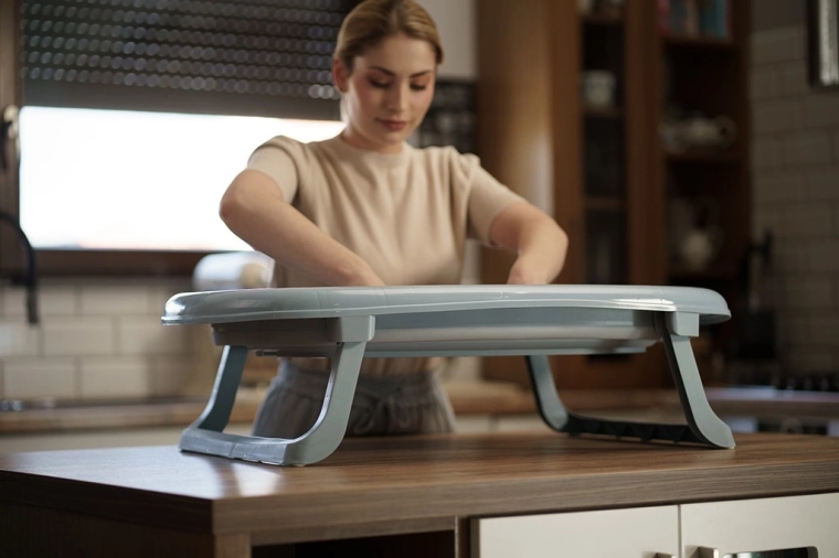 A masszív polipropilén alap, az összecsukható lábak és a megemelt peremek stabilitást és biztonságot nyújtanak a mindennapos használat során.