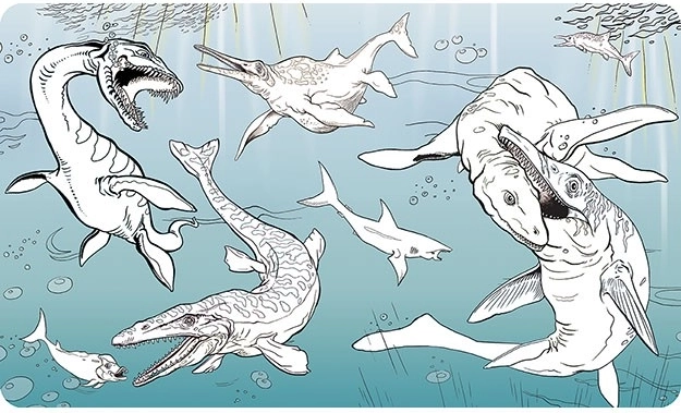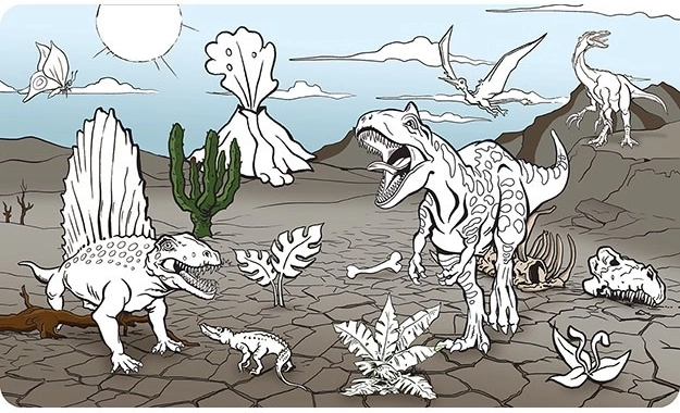- 10 illusztrált oldal dinoszauruszokkal