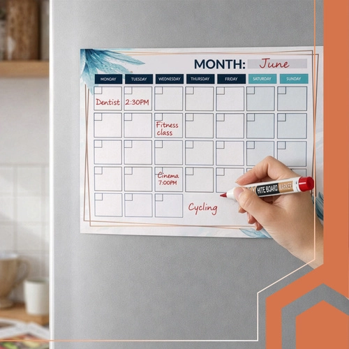 Tartsd kézben az otthoni és munkahelyi teendőket. A RUHHY mágneses tervező egy felületen egyesíti a napi, heti és havi áttekintést, így könnyen megszervezheted a találkozókat, műszakokat, feladatokat és a bevásárlólistát. A 30 × 40 cm-es nagy méret elegendő helyet ad a teljes család jegyzeteinek.