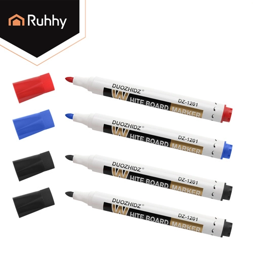 - Azonnal használatra kész: 4 szárazon törölhető filctoll (2× fekete, 1× piros, 1× kék) és kétoldalas mágneses szivacs a csomagban