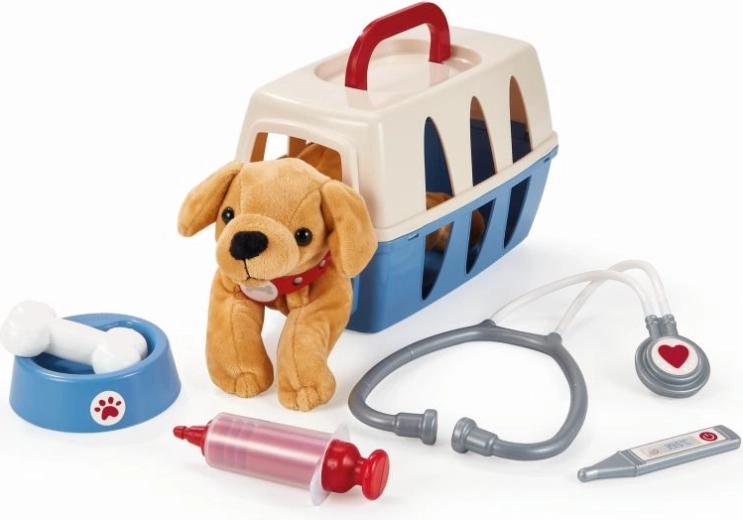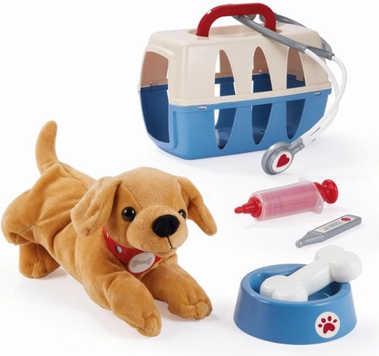 A szett része egy kutyus, tálka, csont és az alap orvosi eszközök – sztetoszkóp, hőmérő és fecskendő. A bőrönd kompakt méreteinek köszönhetően könnyű hordozni és elpakolni.
