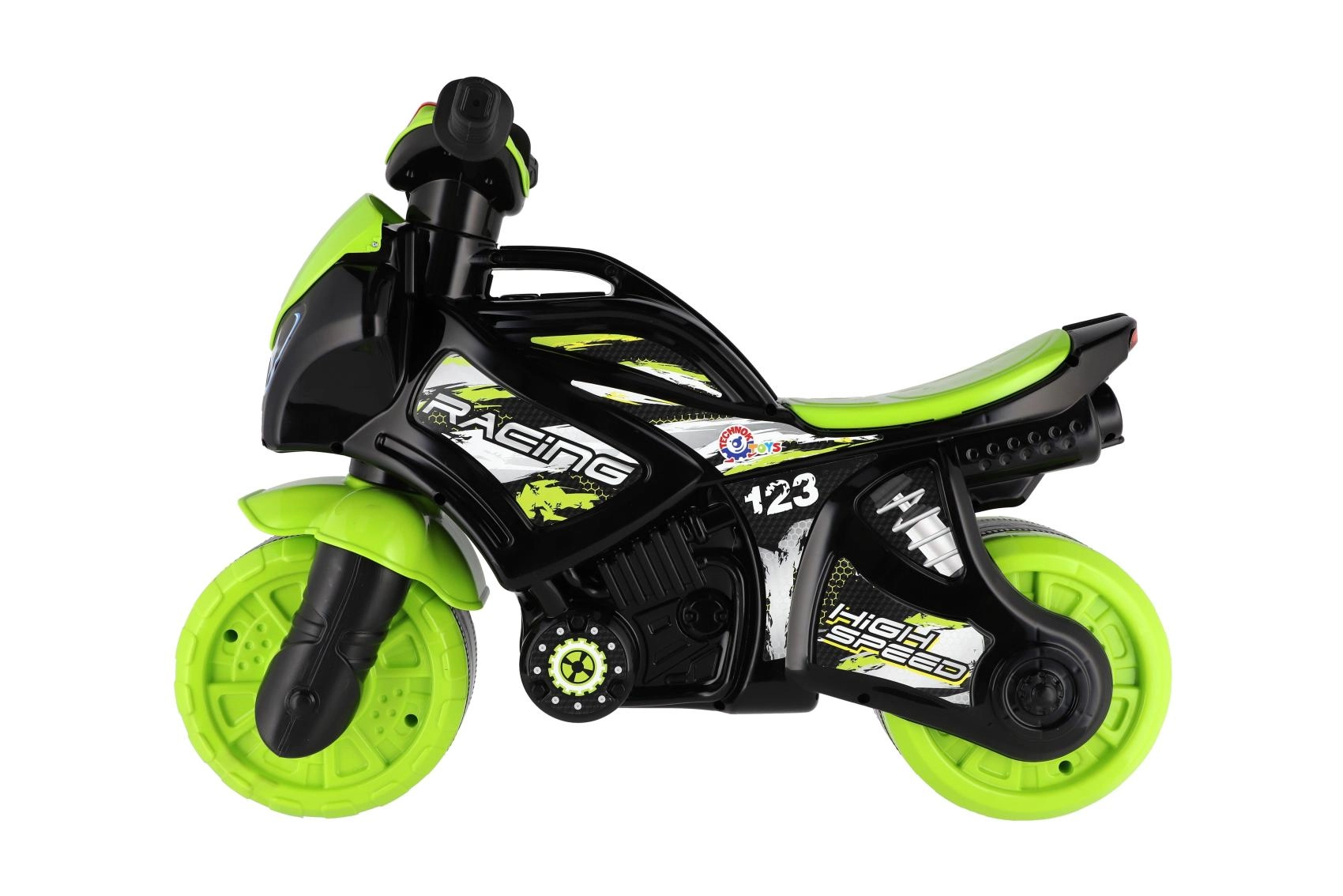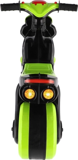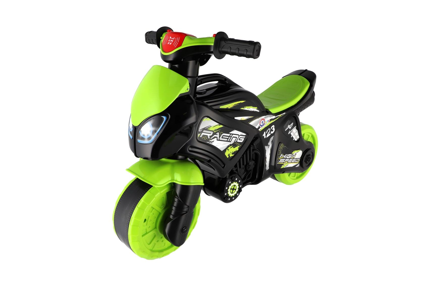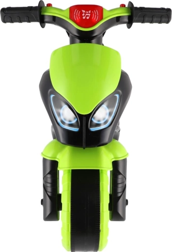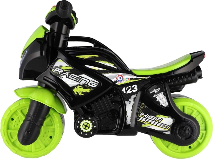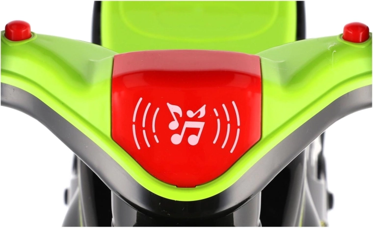 Stílusos, versenymotor formájú gyerek futóbicikli, amely örömet szerez minden kis motorosnak. Rendelkezik széles kerekekkel a stabilitásért, ergonomikus üléssel és könnyen megfogható kormánnyal. A modern zöld‑fekete dizájn sportos matricákkal valósághű megjelenést ad, a fény- és hangeffektek pedig még szórakoztatóbbá teszik a gurulást.