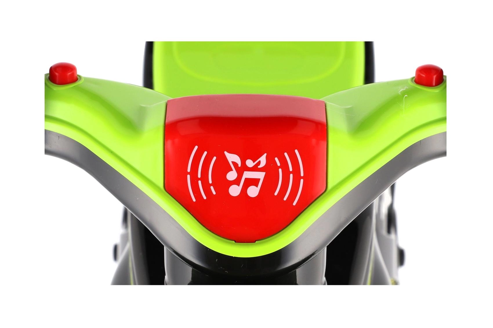 A futóbicikli fény- és hangeffektekkel van felszerelve, amelyek vonzó élménnyé teszik a gurulást. A modern zöld‑fekete kivitel látványos sportdekorációkkal igazi versenygép benyomását kelti, és aktív mozgásra motiválja a gyerekeket.