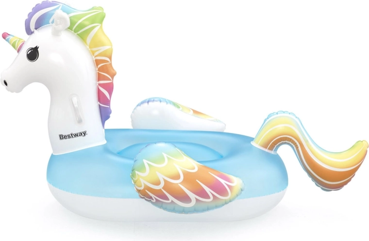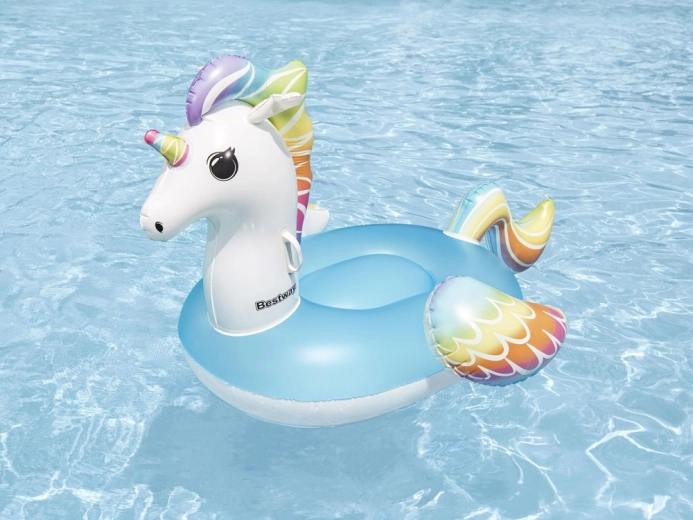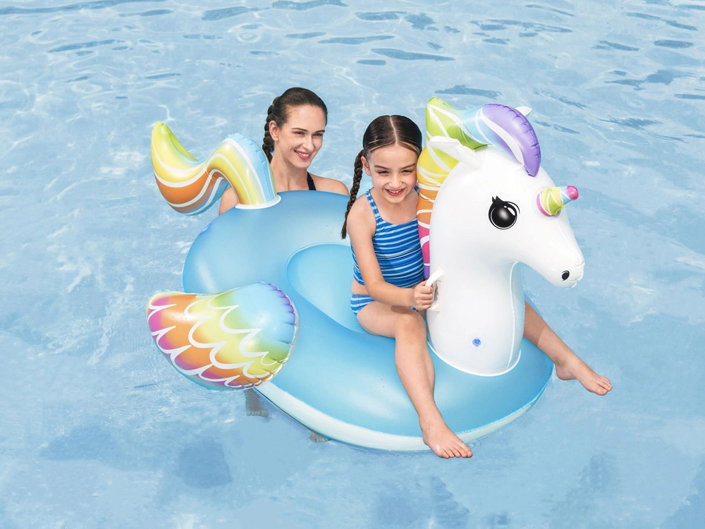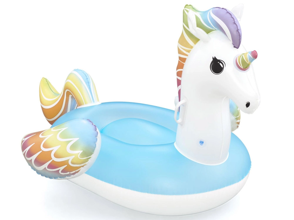 A Bestway márkájú, bájos, unikornis alakú felfújható úszó a gyerekeket és a szülőket egyaránt el fogja ragadtatni. Tágas ülőfelületet, 2 masszív kapaszkodót a biztos tartásért, biztonsági szelepeket és strapabíró, 0,22 mm vastag, tesztelt vinilt kínál. Ideális medencébe, tóra és a tengerhez egyaránt, szórakozáshoz és pihenéshez.
