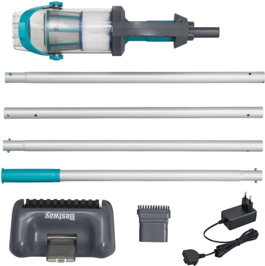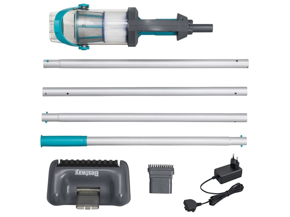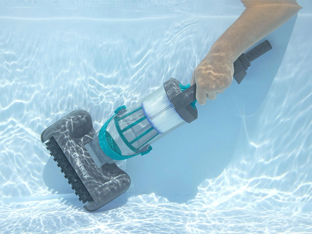 Tartsa medencéjét kristálytisztán a kézi, vezeték nélküli BESTWAY AquaGrip porszívóval. Akár 90 perc üzemidőt, 2 l-es átlátszó tartályt, kettős szűrést (rozsdamentes acél szűrő + VI típusú betét) és 2 cserélhető fejet kínál az aljzathoz, falakhoz és sarkokhoz. A könnyű, 2 m-es rudas rendszernek, a LED világításnak és a szárazonfutás elleni védelemnek köszönhetően a tisztítás gyors, biztonságos és hatékony föld feletti és süllyesztett medencékhez egyaránt.