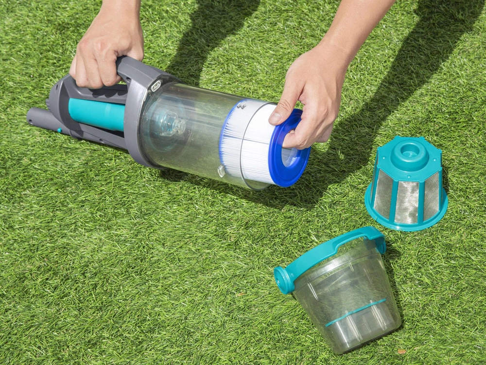 A BESTWAY AquaGrip egy nagy teljesítményű és praktikus, vezeték nélküli medenceporszívó, amelyet rendszeres karbantartáshoz és alapos tisztításhoz terveztek. A 2 literes, átlátszó tartály azonnali telítettség-ellenőrzést tesz lehetővé, a kettős szűrés pedig mindent felfog a levelektől a finom szennyeződésekig. Az automatikus merülésérzékelők védik a motort – a porszívó csak víz alatt aktiválódik.
