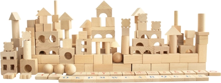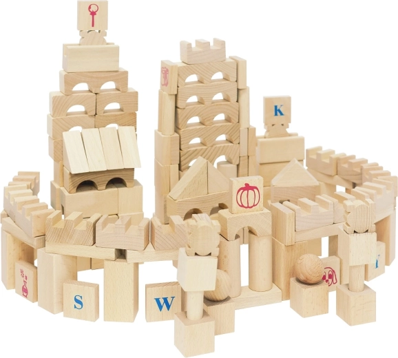 Fedezze fel az időtlen szórakozást a nagy, természetes fa építőkocka-készlettel. A 220 változatos formával a gyerekek könnyedén építenek kastélyokat, tornyokat, hidakat és egész városokat. A sima felület és a gondos megmunkálás biztonságos játékot garantál, míg a kiválasztott elemekre nyomtatott betűk, számok és szimbólumok támogatják a természetes, játékos tanulást.