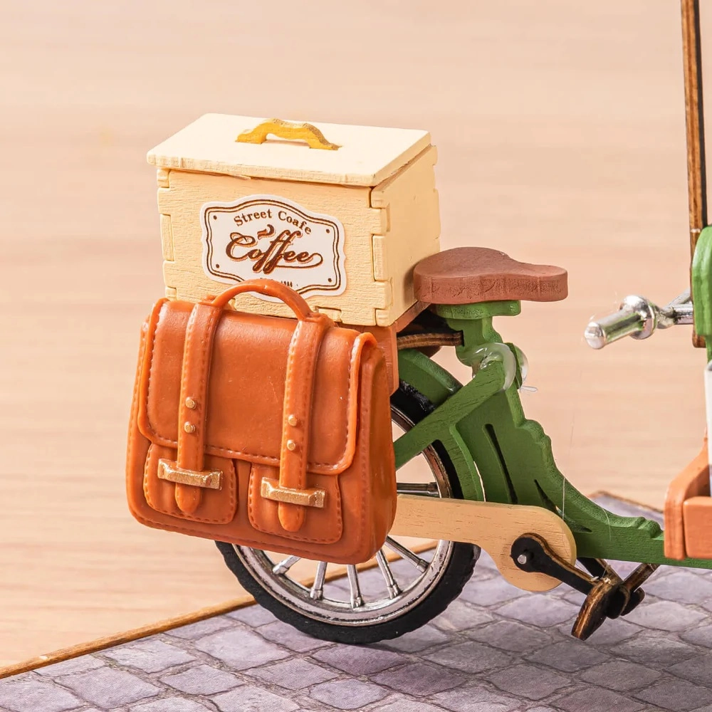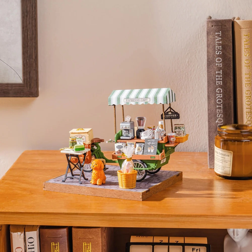 A frissen főzött kávé illata és az utcai kávézók bája – mindez elegáns miniatűrben. Az európai kávéházi hangulat által inspirált kávés kocsi elragadja a miniatűrök és a kávé szerelmeseit. A gondosan kidolgozott részleteknek (kávégép, csészék, szirupok, bagettek, asztal, kiskutya) köszönhetően a modell élethű, és különlegessé tesz bármely vitrint vagy dolgozósarkot.