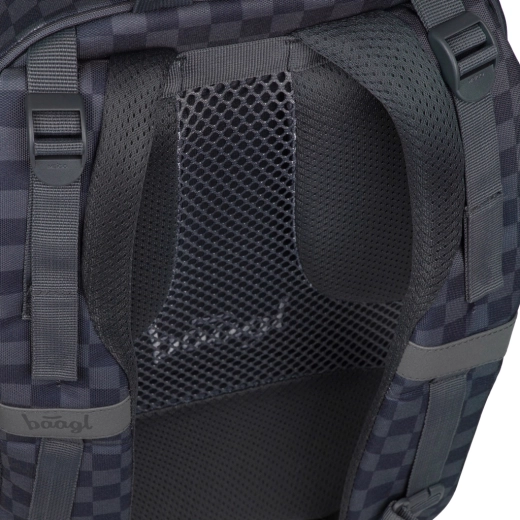 A BAAGL Core Ska átgondolt iskolai hátizsák a mindennapi használatra. Az ergonomikus, szellőző hátkiképzés, az állítható, párnázott vállpántok és a mellpánt egyenletesen oszlatják el a terhet, így egész napos kényelmet biztosítanak. A könnyű, 25 literes felépítésben elférnek a tankönyvek, füzetek és egy legfeljebb 15"-os laptop.