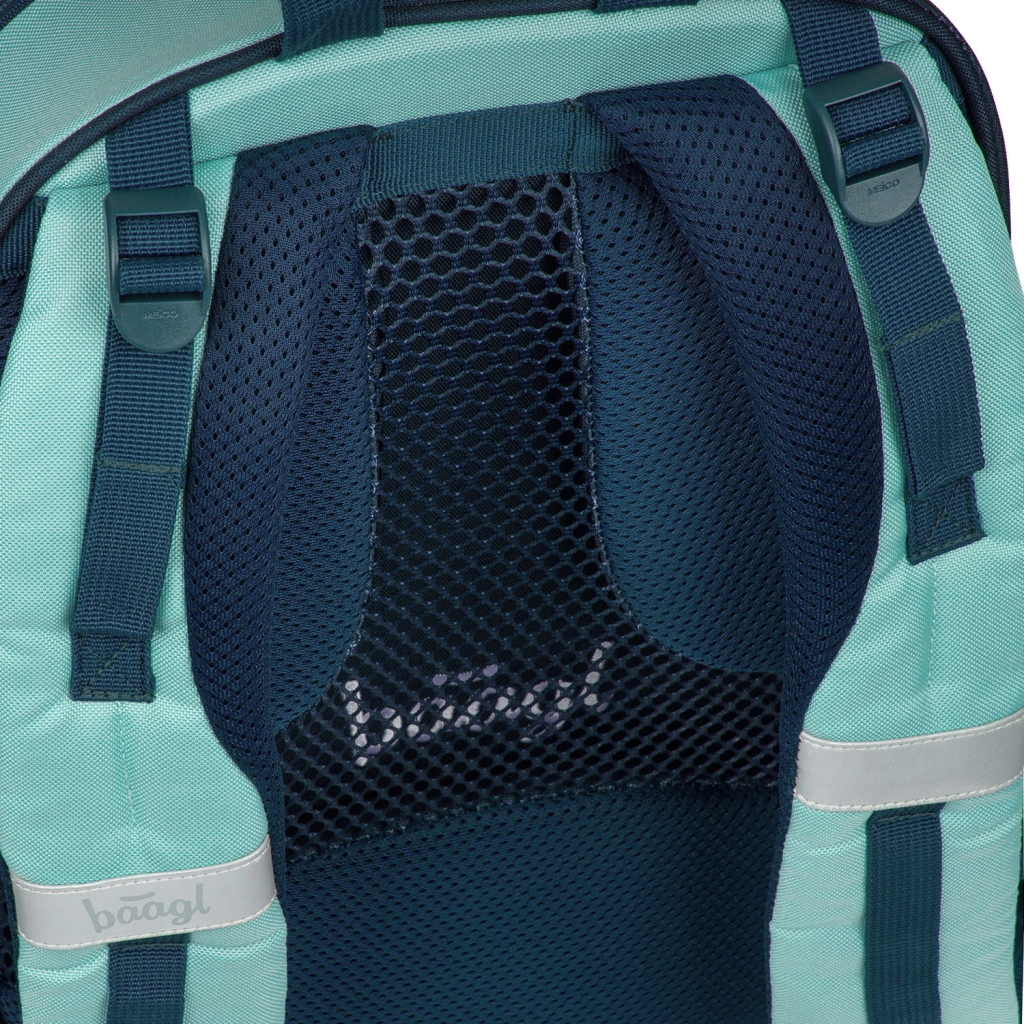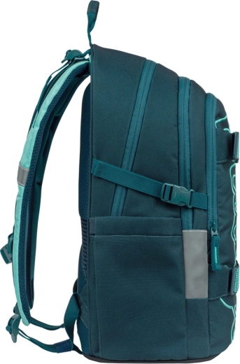 A BAAGL Skate Petrol GRS a modern dizájnt, az ergonómiát és a fenntartható gyártást ötvözi. Az anatómiailag formázott hátrész deréktáji merevítéssel és a légáteresztő párnázás egész napos kényelmet biztosít. A teljesen állítható kompressziós pántoknak köszönhetően a hátizsák kiválóan alkalmazkodik az alkatodhoz, és stabilan tartja a terhet.