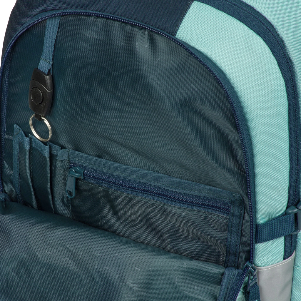 A három külön-külön zárható rekesz áttekinthető elrendezést nyújt az iskolai felszerelésnek. Belül található szervező, apró zsebek, kulcskarika és párnázott 15"-os zseb laptop vagy tablet számára. Az oldalzsebek erős anyagból készültek, ideálisak kulacs számára. Az elülső pántokkal könnyen rögzíthető a gördeszka, pulóver vagy kabát.