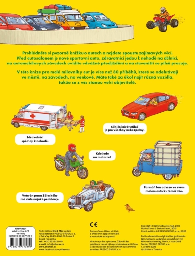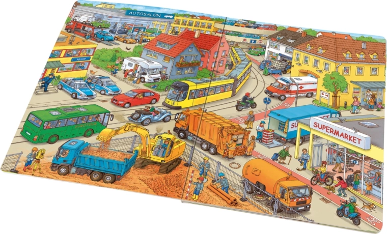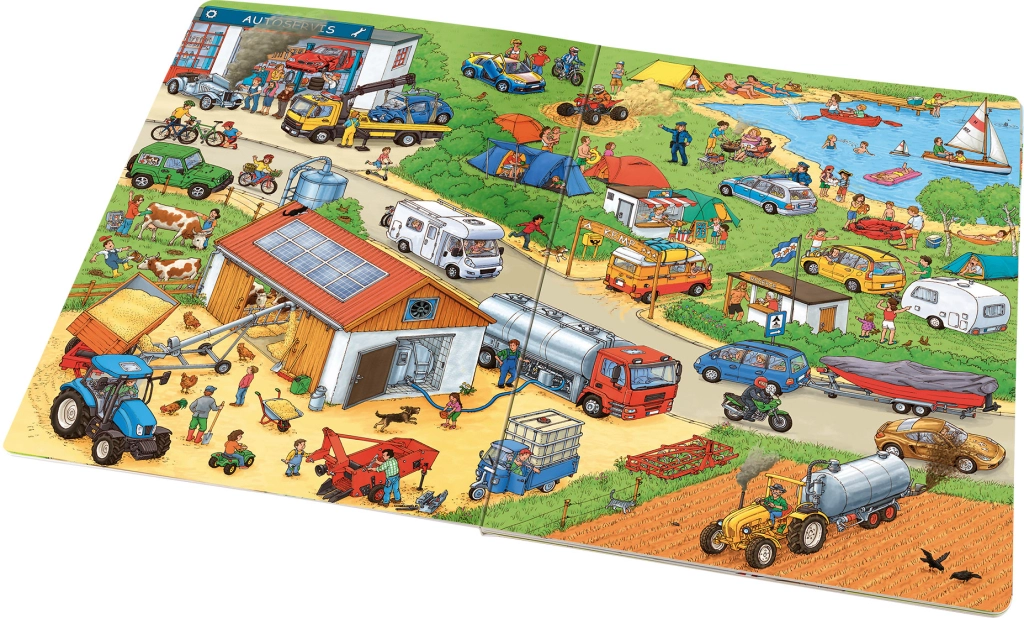 Ez a gazdagon illusztrált könyv elbűvöli a motorok és gépek kis rajongóit. Minden oldalon a gyerekek a való világból ismert jelenetek sokaságát találják – a forgalmas utaktól az építkezéseken át egészen a versenypályákig. Az illusztrációk tele vannak apró részletekkel, amelyek fenntartják a figyelmet, és megfigyelésre, valamint mesélésre ösztönöznek.