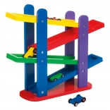 Fa autópálya három színes kisautóval biztosít végtelen szórakozást a kaskádos színes pályákon való könnyű átfordulásnak köszönhetően.