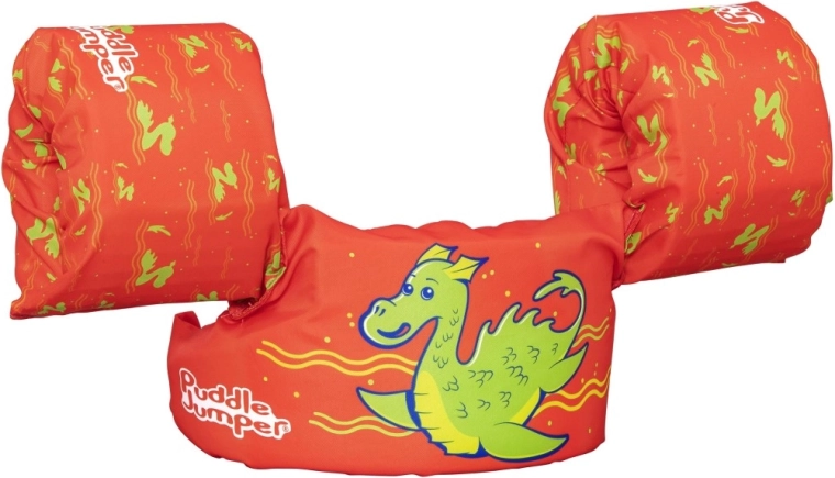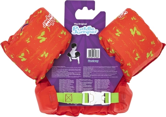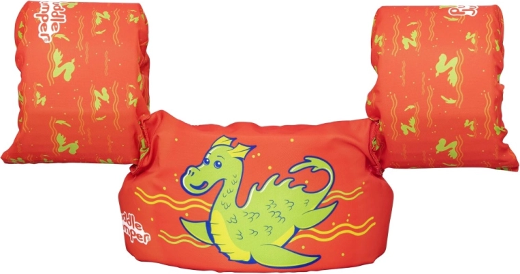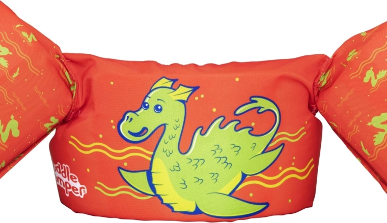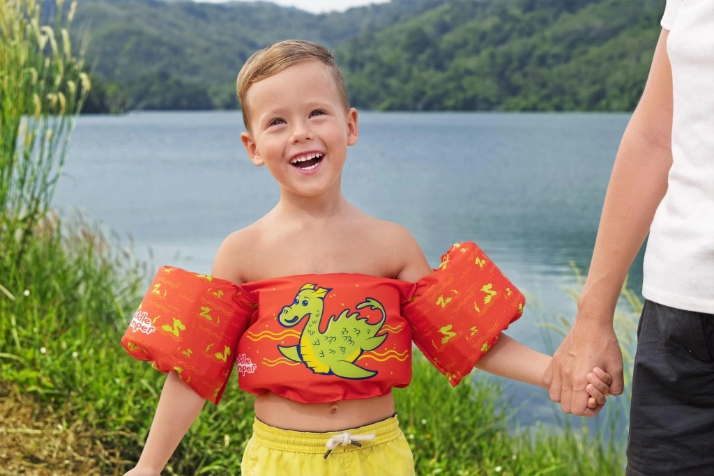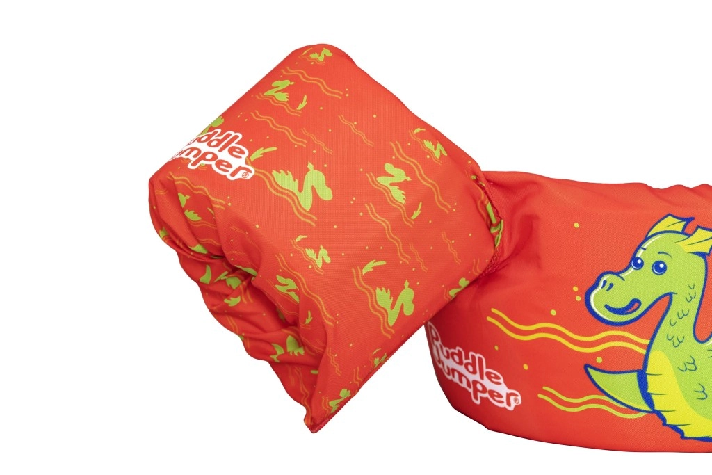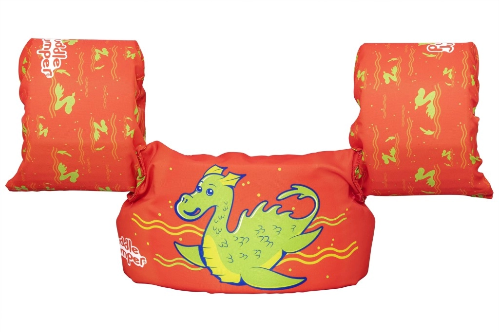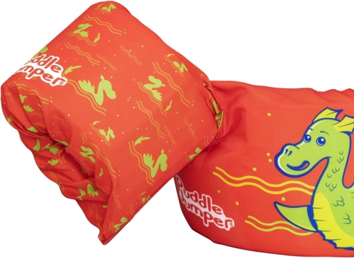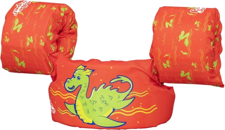 Az élénk narancssárga szín és a zöld sárkányminta segíti a gyermek felügyeletét és motiválja a vízi szórakozásra.