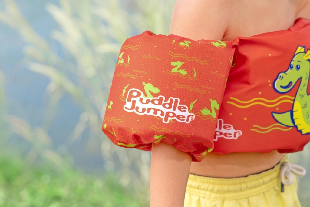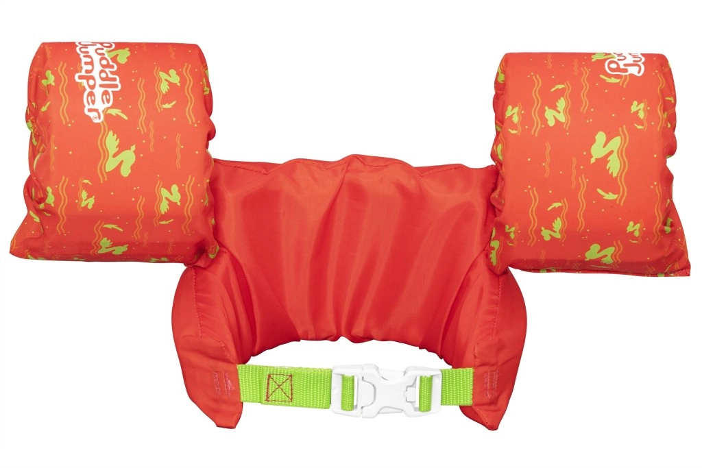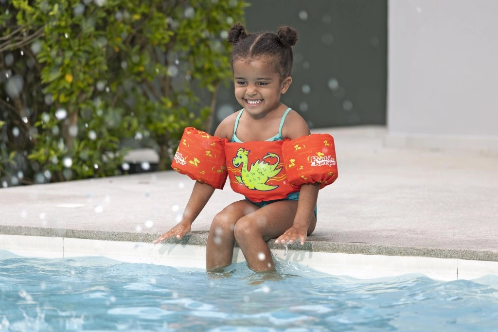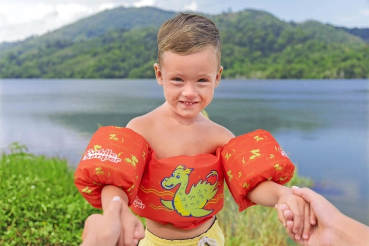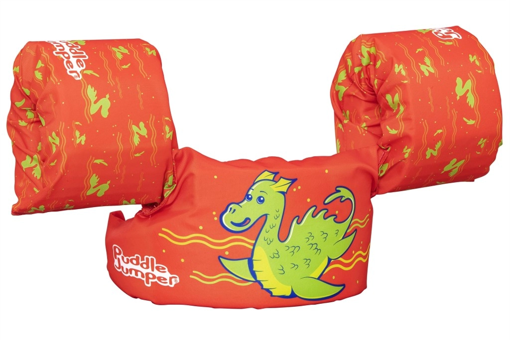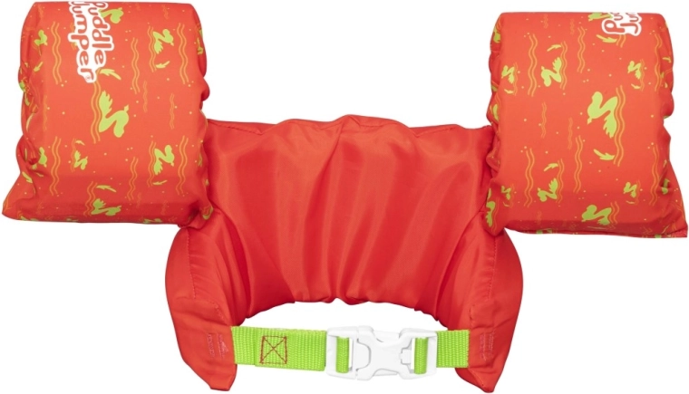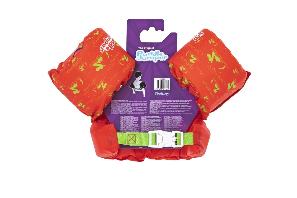 Az élénk narancssárga szín és a zöld sárkányminta segíti a gyermek felügyeletét és motiválja a vízi szórakozásra.