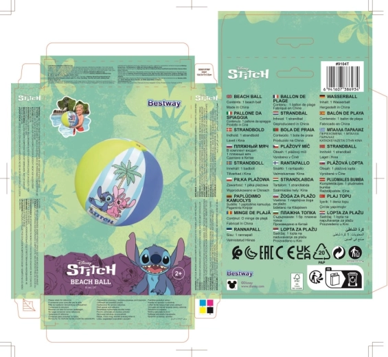A DISNEY STITCH strandlabda szórakozást hoz a vízbe és a partra egyaránt. A minőségi PVC anyagnak és az átgondolt, 51 cm-es méretnek köszönhetően jól kézben tartható, jól pattan és könnyen hordozható. A kék, sárga és narancssárga színű, pálmákkal díszített stílusos szegmensek és a kedvelt STITCH figura a kicsik és nagyok tetszését is elnyeri.