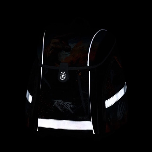A főrekesz rendezővel és elválasztóval, névjegycímkével és órarenddel van felszerelve. Nem hiányzik a elülső zseb az uzsonnás doboznak, a oldalsó cipzáras zsebek és a mágneses záródás az egyszerű nyitásért. A fényvisszaverő elemek növelik a gyermek láthatóságát az iskolába vezető úton.