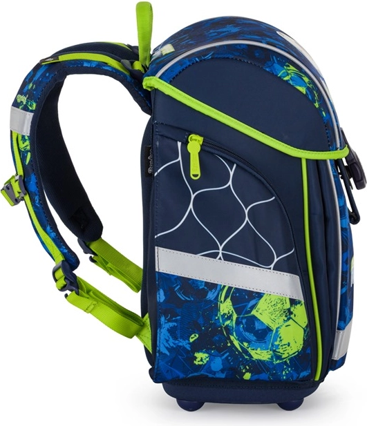 Könnyű és tartós iskolai szett kis focistáknak, amely tartalmaz egy Premium Light iskolatáskát, egy tornazsákot és egy egyszintes tolltartót. Mindössze 970 g súly, ergonomikusan kialakított hátkialakítás, kényelmes, párnázott pántok, fényvisszaverő elemek a biztonságért és masszív, vízálló alj. Ideális választás 121 cm-től, bőséges hellyel minden szükséges holminak.