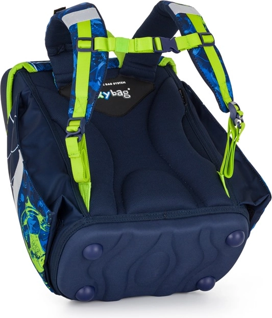 A táskán masszív, vízálló, lábakkal ellátott alj, fényvisszaverő elemek a jobb láthatóságért, mágneses zár a könnyű nyitásért, elülső zseb az uzsonnás doboznak és cipzáras oldalzsebek találhatók. A szett része továbbá a strapabíró, 100% poliészter tornazsák és a két füllel ellátott egyszintes tolltartó átlátszó órarendfóliával.