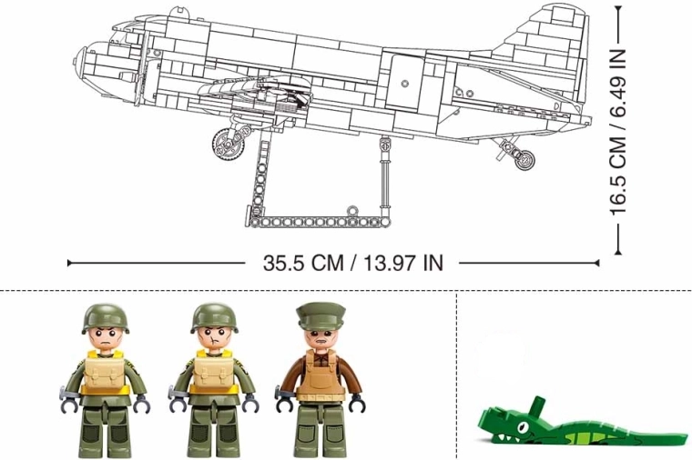 A dobozban 3 katona minifigurát és tematikus kiegészítőket (ládák, felszerelés, fegyverek) találsz, amelyek bővítik a játék lehetőségeit. A kockák tartós és biztonságos ABS műanyagból készülnek, a készlet pedig kompatibilis a LEGO, COBI és MEGA BLOKS rendszerekkel, így gond nélkül bővítheted a gyűjteményed. A csomag része az áttekinthető összeszerelési útmutató – ideális választás a haditechnika rajongóinak és a tapasztalt építőknek egyaránt.