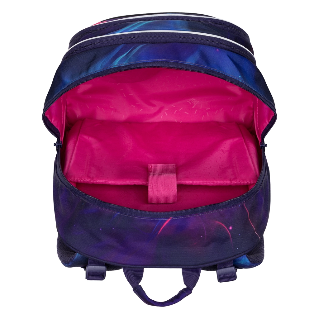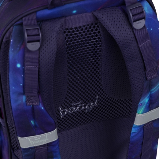 Az anatómiailag formázott, szellőző hátpanel, a párnázott és állítható vállpántok, valamint a mellpánt egész napos, egészséges teherelosztást biztosítanak.