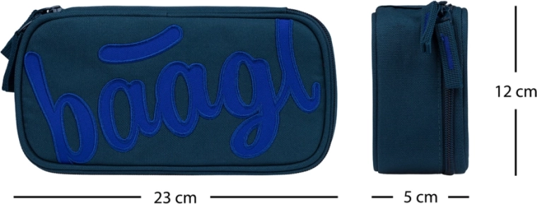 Stílusos és tartós BAAGL iskolai tolltartó kék színű logóval, ideális mindennapi használatra. Kínál tágas főrekeszt, dupla kihajtható fedőlapot az átlátható rendszerezéshez, belső zsebet és órarendablakot. A minőségi YKK cipzárak és az erős húzókák hosszú élettartamot biztosítanak. Újrahasznosított anyagokból készült, GRS tanúsítvánnyal. A tolltartó töltet nélkül kerül szállításra.
