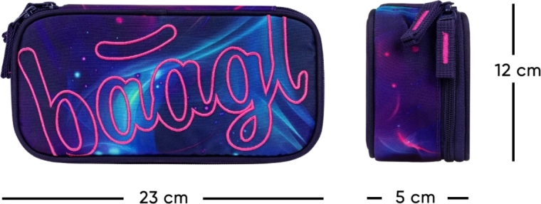 Az elegáns Baagl Nova GRS tolltartó galaktikus dizájnnal ötvözi a modern megjelenést, a praktikusságot és a fenntarthatóságot. A fő rekesz dupla kihajtható füllel megkönnyíti a ceruzák, színesek, filcek és vonalzók áttekinthető elhelyezését, míg a belső zseb és az átlátszó órarendablak segít kézben tartani a tanítási napot.
