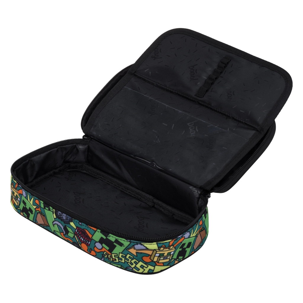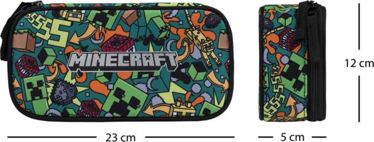 Stílusos és tartós BAAGL etue tolltartó MINECRAFT Chaos motívummal, tágas főrekesszel, dupla kihajtható füllel, belső zsebbel és órarend-ablakkal. A YKK márkás cipzáraknak és a masszív, újrahasznosított anyagnak köszönhetően ideális a mindennapi használathoz. A tolltartó töltet nélkül kerül szállításra.
