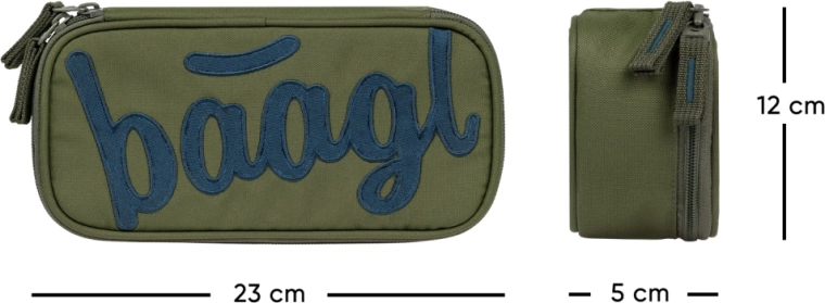 Az elegáns és strapabíró Baagl Olive tolltartó a mindennapi iskolai használatra készült. A kompakt etue könnyedén elfér a hátizsákban, mégis elegendő helyet biztosít minden írószernek és apróságnak. A minőségi YKK cipzárak és a masszív kialakítás hosszú élettartamot és megbízható használatot garantálnak.