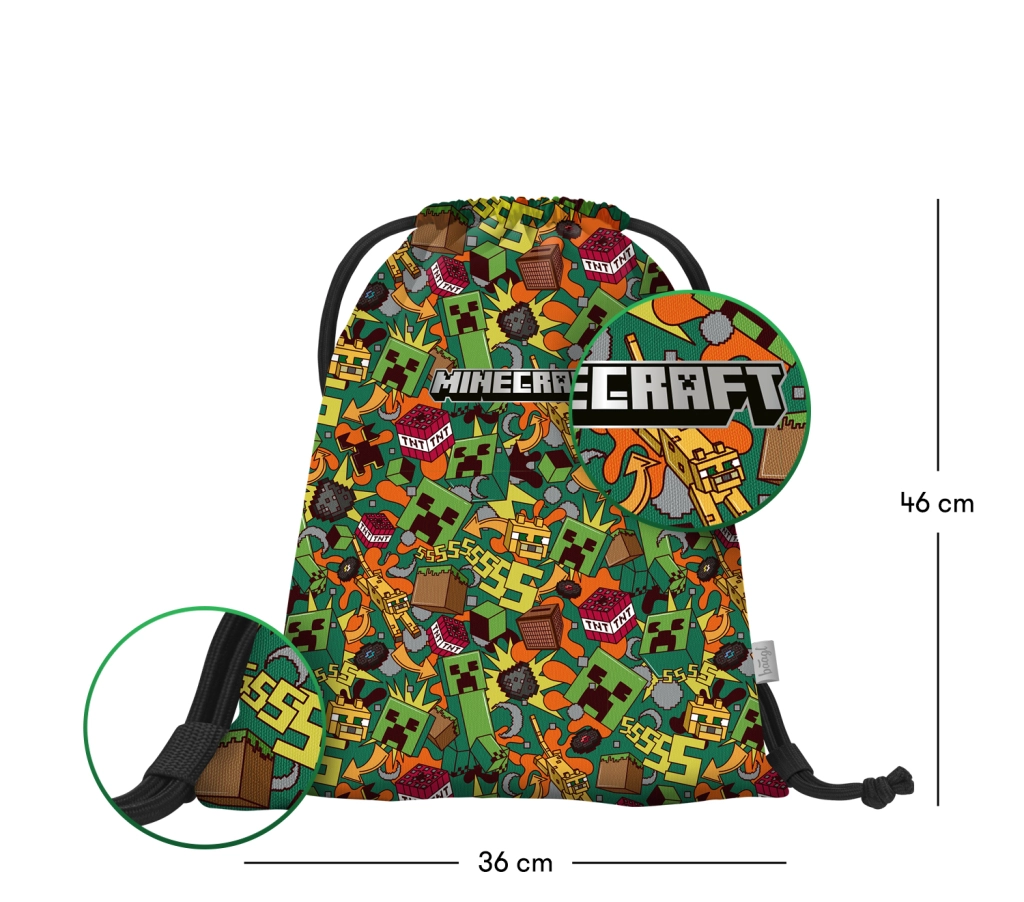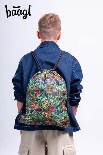 A BAAGL MINECRAFT Chaos cipőzsák remek választás iskolába, szakkörökre és szabadidős tevékenységekhez. A tartós és könnyen tisztán tartható anyag hosszú élettartamot biztosít, míg a feltűnő játékos minta minden Minecraft-rajongót megörvendeztet.