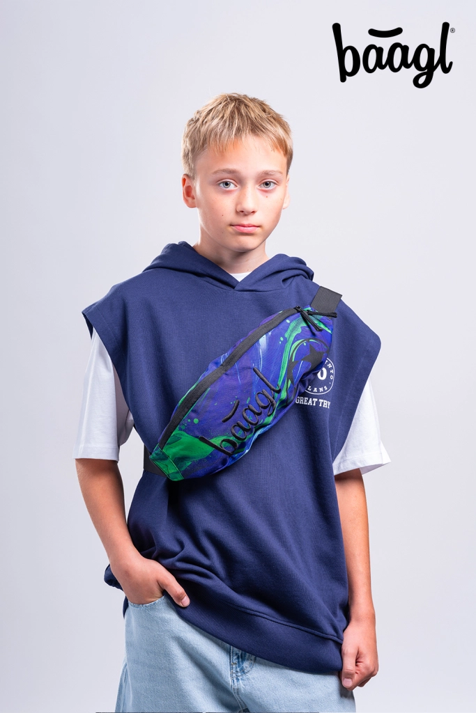 Stílusos és praktikus BAAGL övtáska, a márka hátizsákjainak dizájnja által inspirálva, vízálló és újrahasznosított anyagból készül, kétirányú YKK cipzárral, kétoldalúan állítható pántokkal és mindössze 100 g-os alacsony tömeggel. A 4,5 l űrtartalomnak köszönhetően könnyedén elfér benne minden szükséges holmi, a GRS tanúsítvány pedig környezetbarát megoldást garantál.