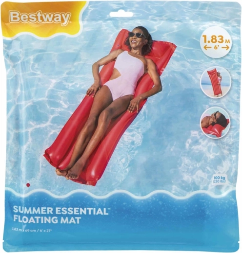 Élvezze a nyarat a kényelmes BESTWAY felfújható matraccal elegáns piros színben. A könnyű szerkezet, az integrált párna és a hosszanti légkamrák stabilitást és maximális kényelmet biztosítanak a vízen. Ideális medencéhez, tóhoz és tengerhez, könnyen hordozható és gyorsan használatra kész.