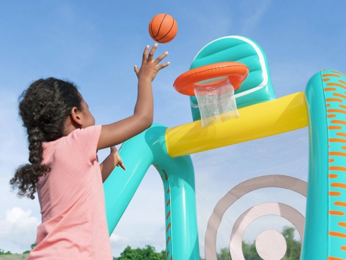 Kosárlabda, foci és céldobás egy kompakt játékközpontban. A gyerekek könnyedén válthatnak a feladatok között, és fejleszthetik pontosságukat, koordinációjukat és csapatjátékukat.
