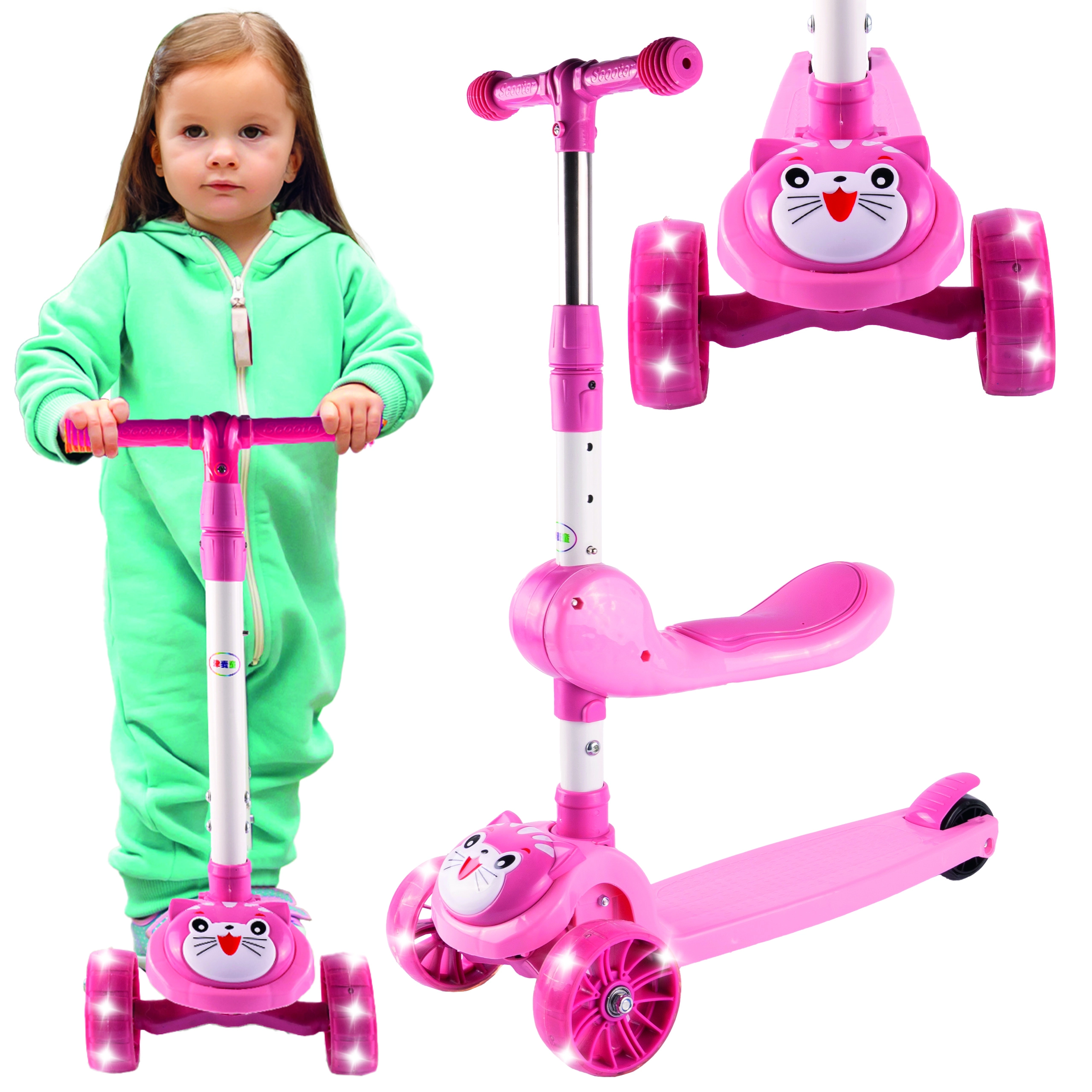 Ez a gyerekeknek készült Kotek háromkerekű roller stabil haladást, állítható kormányt és világító LED kerekeket kínál a nagyobb biztonság és szórakozás érdekében. A csúszásmentes fellépő és a hátsó lábfék miatt ideális a kis kezdők első útjaihoz. A praktikus ülés kényelmet biztosít a hosszabb kirándulások során.