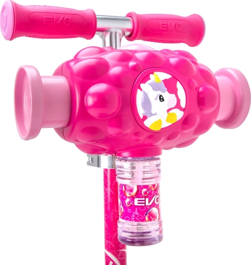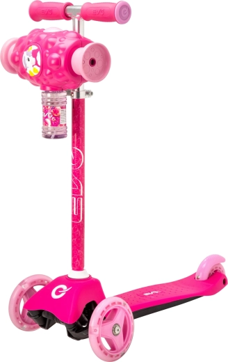 Szórakoztató és stabil EVO Bubblz Mini Cruiser gyerek roller három kerékkel, dőlésvezérelt kormányzással és állítható kormányszárral. A beépített buborékkészítő menet közben rengeteg buborékot varázsol, ami elragadtatja a gyerekeket. A széles, csúszásgátlós fellépő, a hátsó lábfék és az ABEC-5 csapágyak kényelmes és csendes utazást biztosítanak. Ideális 3 éves kortól, a egyensúly és koordináció fejlesztéséhez.