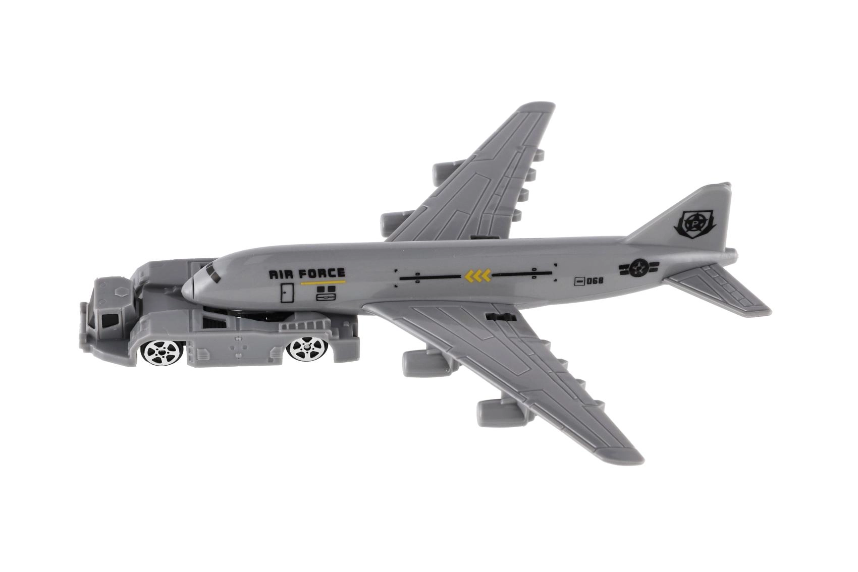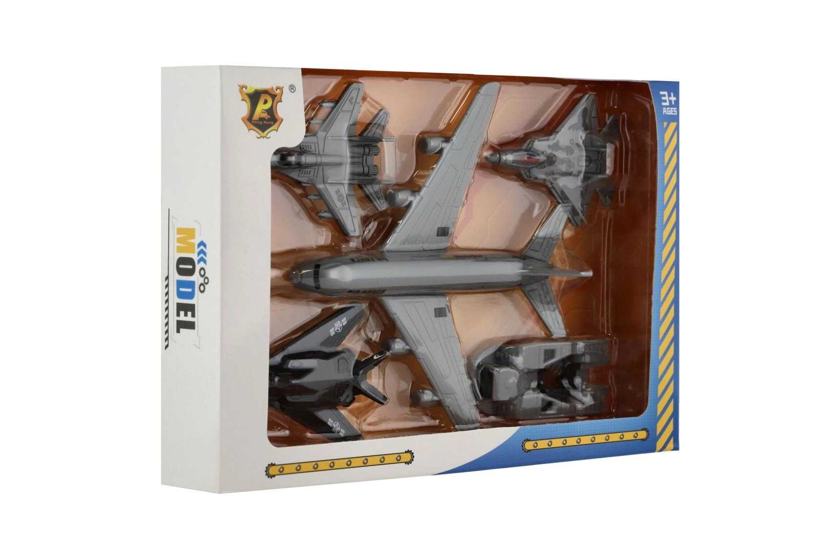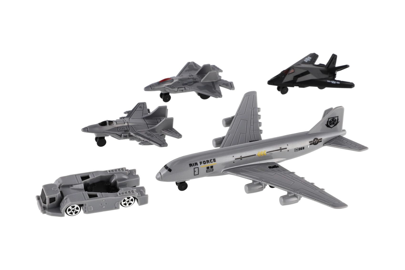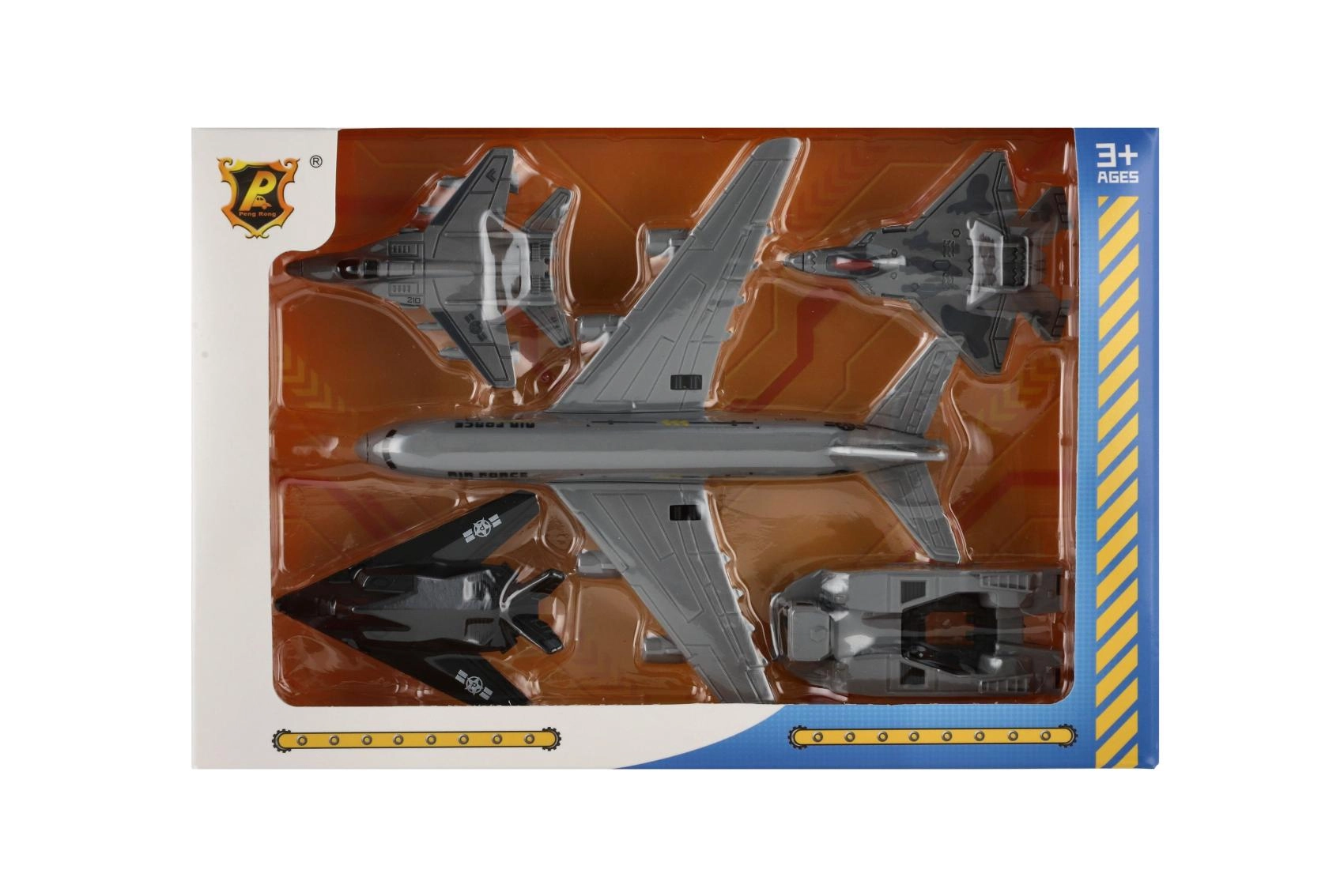 Szuper készlet kis pilótáknak: tartalmaz egy nagy katonai repülőgépet, 3 vadászgépet és egy földi járművet szabadonfutó meghajtással. A részletes kidolgozásnak, az ellenálló műanyagnak és az egyszerű, előretolással működő irányításnak köszönhetően a gyerekek órákon át élvezhetik a kreatív játékot repülőtéren és katonai bázison egyaránt.
