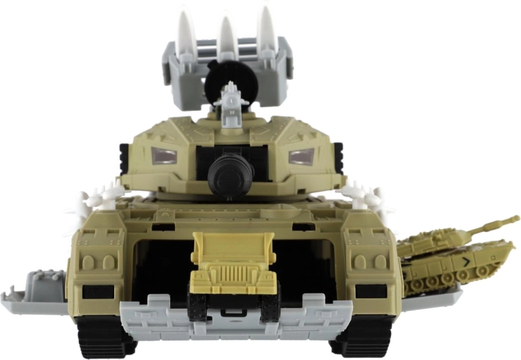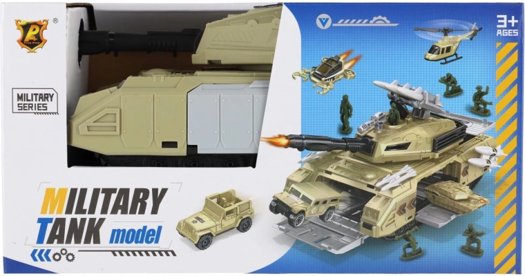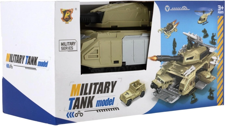 A tankot katonafigurák, kísérő járművek és helikopter egészítik ki. A gyerekek kifinomult jeleneteket alkothatnak, fejlesztve képzelőerejüket és az együttműködést.