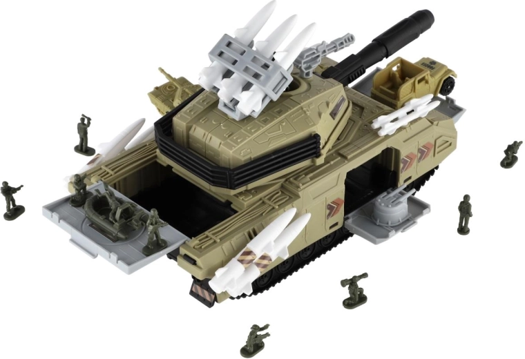 Fedezze fel a taktikai küldetések világát a műanyag katonai tankkal, amely valósághű részleteivel, lendkerekes, sima futásával és számos kiegészítőjével nyűgöz le. A nyitható részeknek és a funkcionális elemeknek köszönhetően a gyerekek könnyedén alkothatnak saját akciódús jeleneteket.