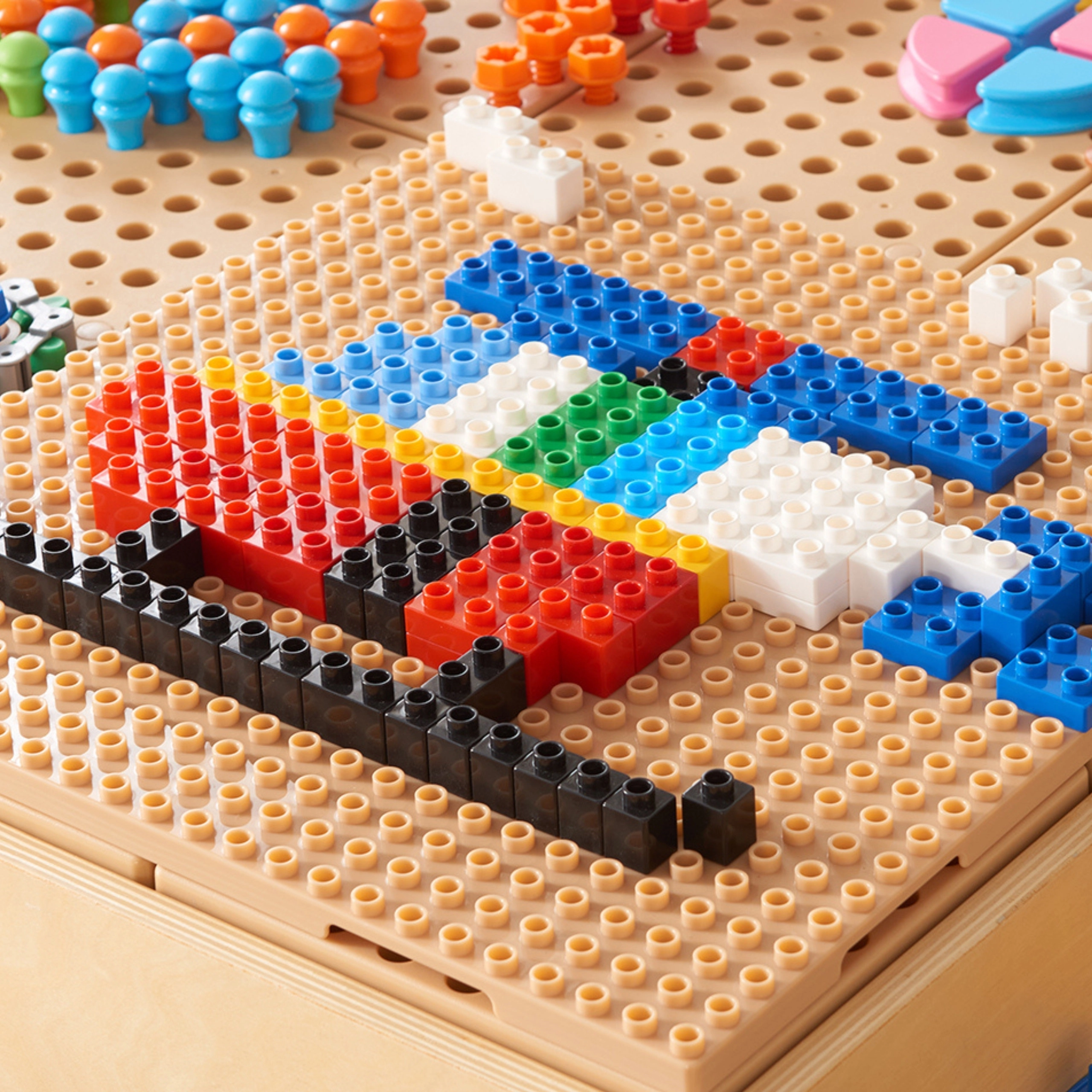A Masterkidz építőkészlet remek választás kis építők számára. Az elemek egyszerűen a lapba illeszthetők, így a gyerekek gyorsan hoznak létre saját színes mintákat és képeket. A szórakozás természetes módon támogatja a STEM készségeket, a kreativitást és a kitartást a feladatok megoldásában.