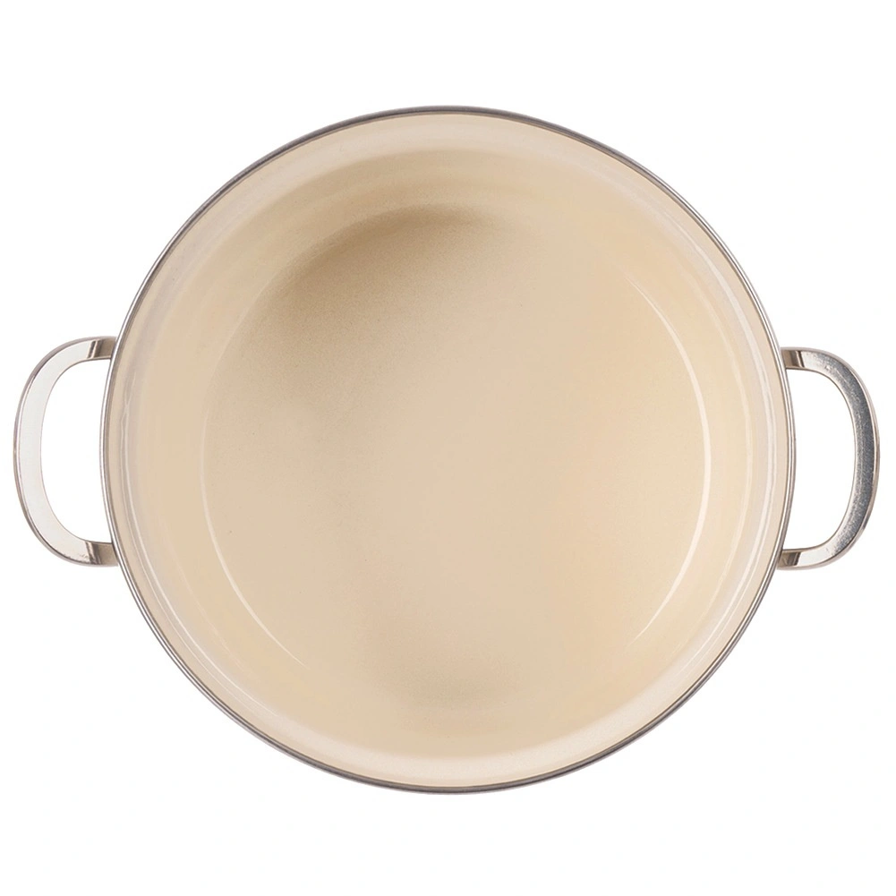 Válassza az időtálló dizájnt és a praktikusságot. Ez a krém színű zománcozott Maki lábas kiváló a mindennapi főzéshez, pároláshoz és az asztalon való tálaláshoz is. A masszív zománcozott acél egyenletes hőeloszlást és könnyű karbantartást biztosít, míg a rozsdamentes peremek és fülek növelik a tartósságot és a kényelmet a kezelés során.