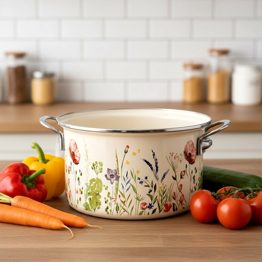 Széles körű kompatibilitásának köszönhetően a lábas alkalmas gáz-, elektromos-, üvegkerámia-, halogén- és indukciós főzőlapra, valamint sütőben is használható. Főzés után bátran beteheti a mosogatógépbe. A zománc higiénikus és egészségre ártalmatlan, ezért nem veszi át a szagokat vagy ízeket, és allergiások számára is biztonságos. A dekoráción előfordulhatnak apró gyártási egyenetlenségek (pl. enyhe domborulat vagy nem teljesen szimmetrikus nyomat), amelyek nem befolyásolják a funkcionalitást, és kiemelik a termék hagyományos jellegét.