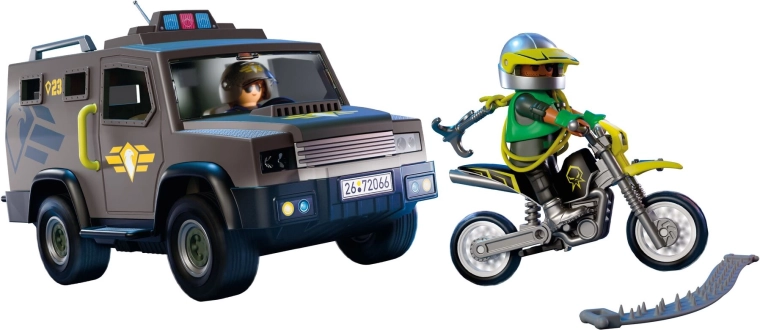 Az akciódús Playmobil SWAT taktikai jármű készlet mindent tartalmaz, ami egy sikeres bevetéshez kell. A páncélozott jármű levehető tetővel és nyitható hátsó ajtókkal könnyedén befogadja az egység felszerelését, valamint a szögesdrót-gátlót a menekülő elkövető motorkerékpárjának megállításához. A működő fényhíd még hitelesebbé teszi a játékot, és fokozza az élményt minden üldözés során.
