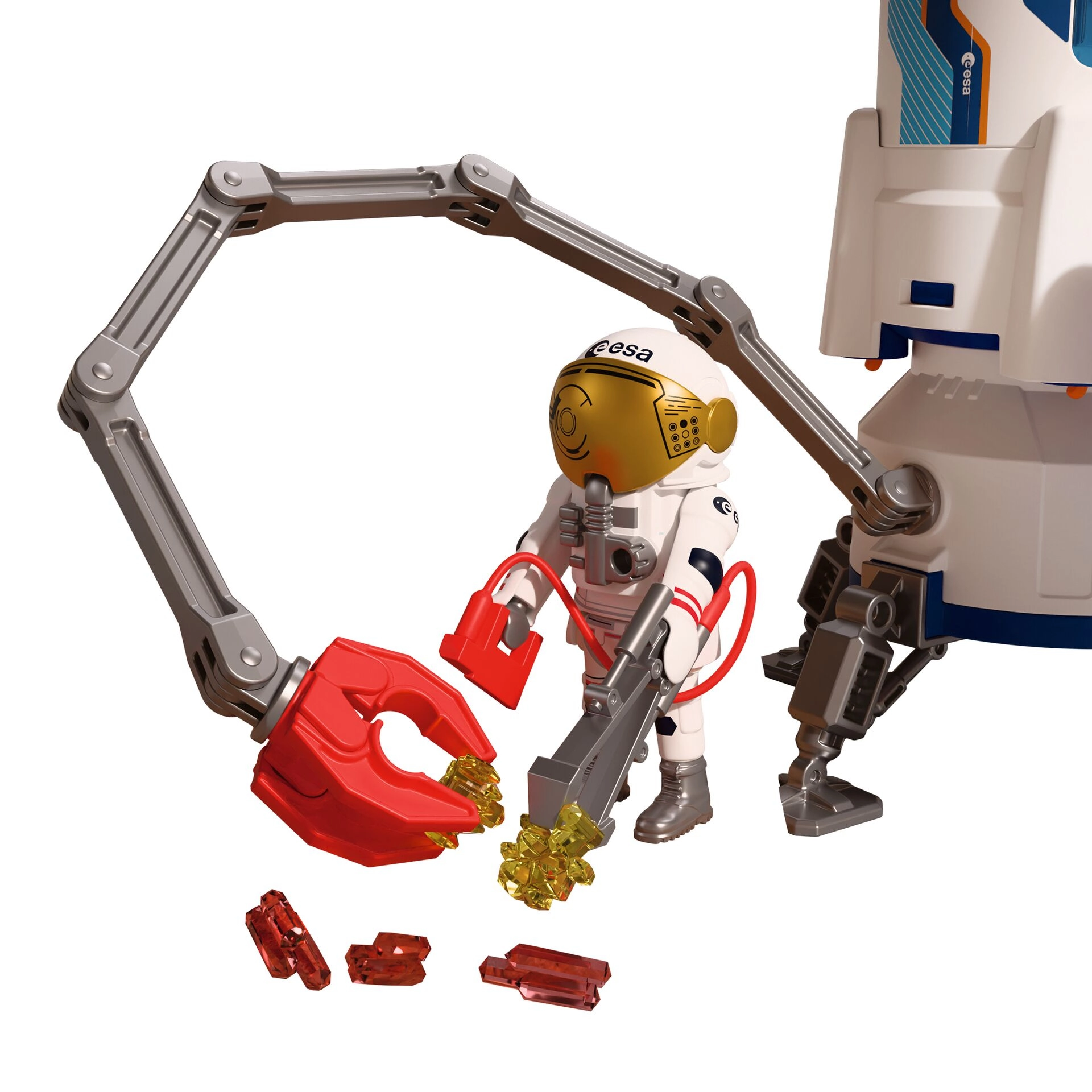 A mozgatható kar markolóval könnyedén felveszi a kőzeteket, és a rakéta tárolórekeszeibe helyezi őket. Ideális tudományos küldetésekhez és a finommotorika fejlesztéséhez.